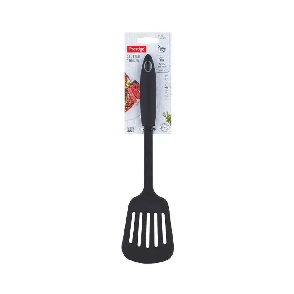 Serve and turn your food, using the Prestige Nylon Slotted Turner. This slotted turner is ideal for making burgers, pancakes, eggs and you can remove biscuits from a baking tray.