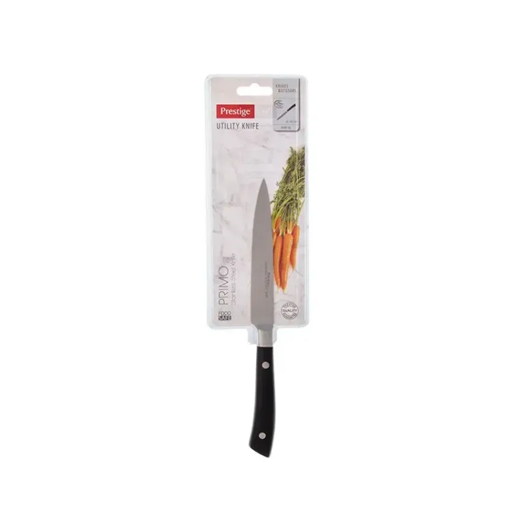 The Prestige Primo Utility Knife is a multi-purpose knife with a stainless steel blade, which is ideal for slicing, mincing, and dicing fruits, vegetables, and meat.