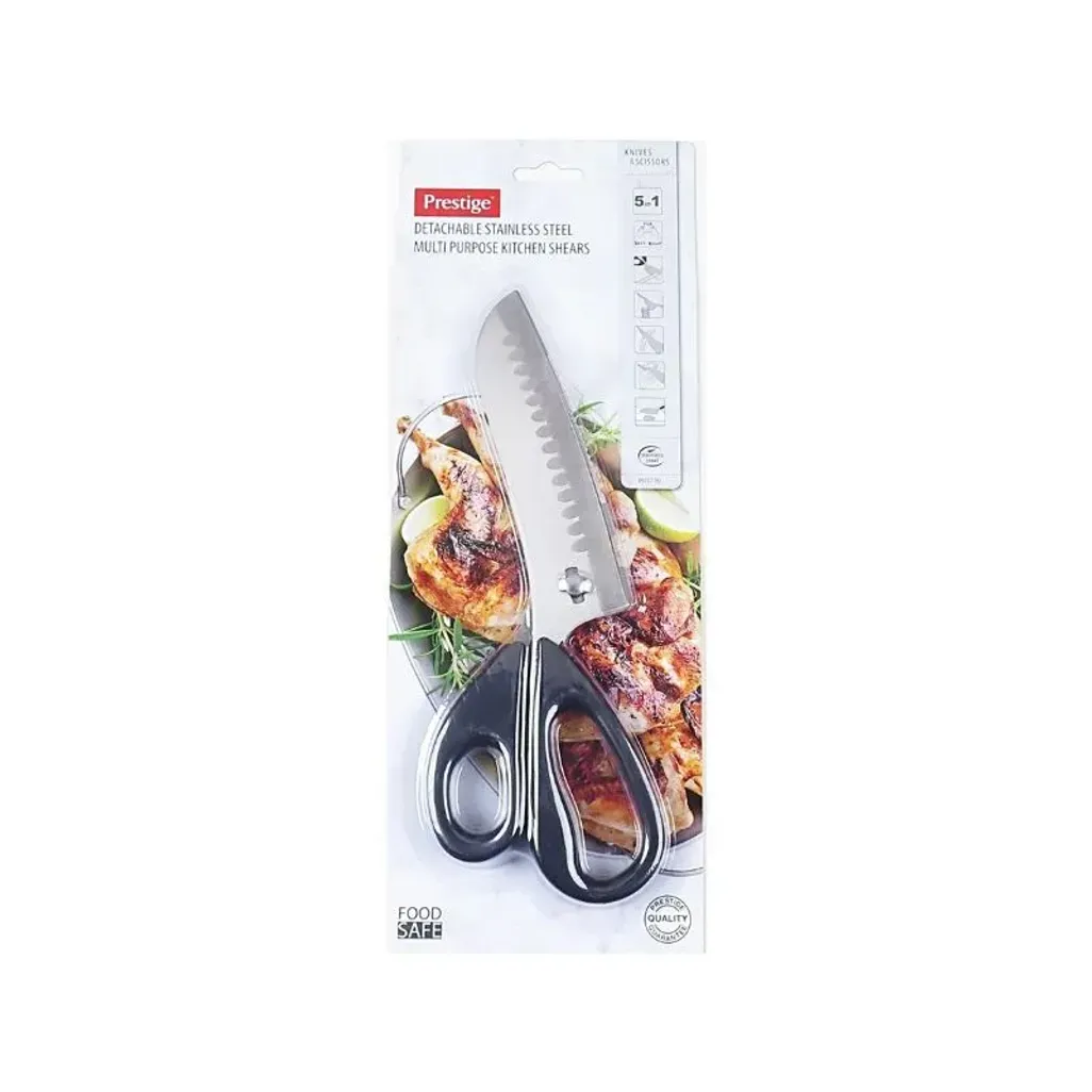 Make food preparation quicker and easier with the Prestige Multi-Purpose Detachable Kitchen Shears, a practical and durable kitchen tool, designed to make your kitchen tasks lighter and faster. It is crafted from high-quality stainless steel, which combines sharp cutting performance with versatile functionality. This multi-purpose five-in-one can be used for cutting meat, poultry, herbs, packaging, and more. The detachable blades can be easily separated for thorough cleaning and added convenience. Thanks to its food-safe material, it is safe for direct contact with food and is easy to maintain.