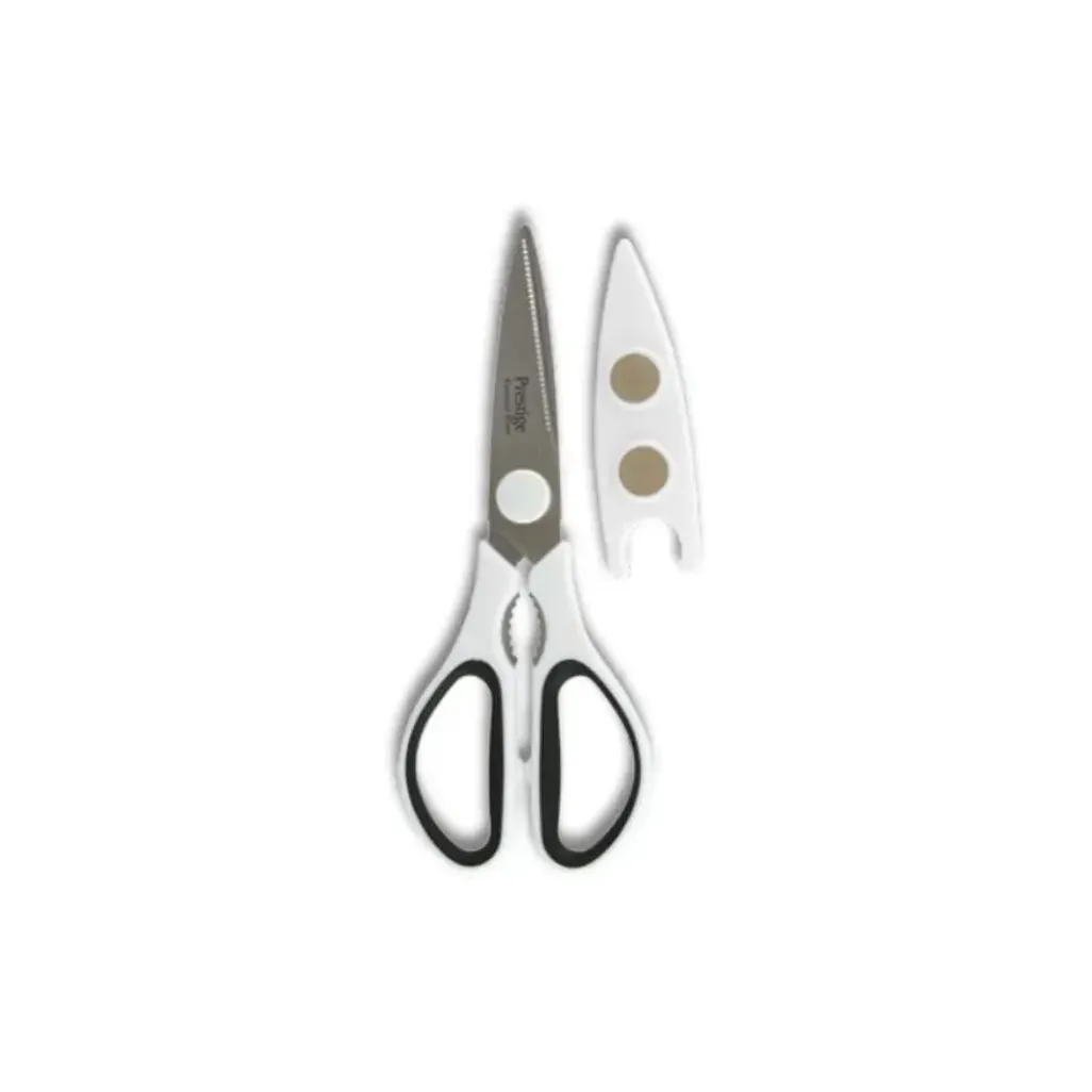 This Prestige Multipurpose Scissor with Magnet will cut easily. The blades are made from stainless steel and include a magnetic sheath for storage. You can cut, twist open those tough jars and crack nuts. Utilized for left or right hand use.