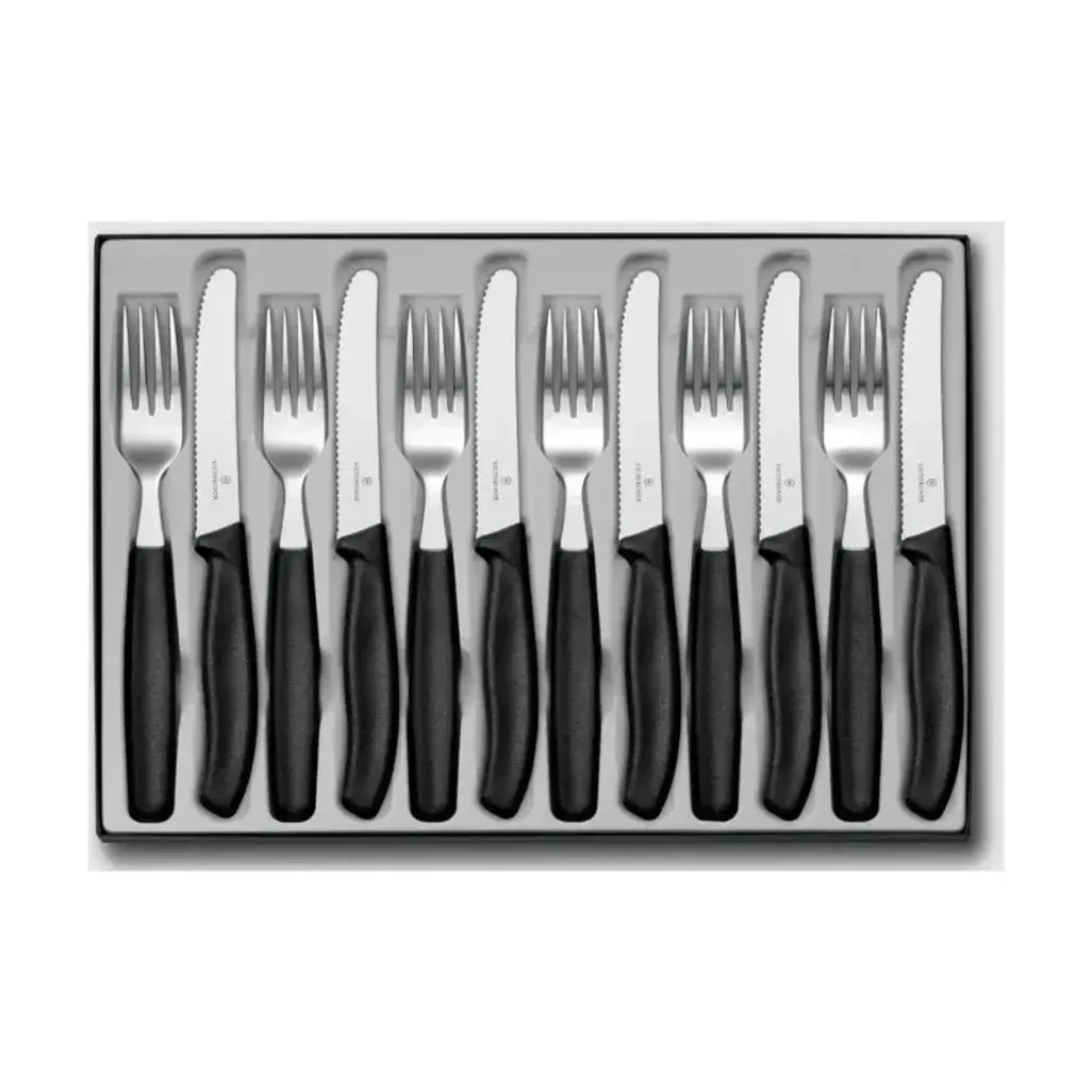 You'll never run short of knives and forks with the Victorinox Swiss Classic 12 Piece Steak Knives. Made from polypropylene and stainless steel, this set will bring class and style to your kitchen utensils. Slice and dice with ease while enjoying quality in your hand. Have the finest and ultrasharp cutlery in your possession and yes, it's dishwasher safe. Ideal for everyday use and dining. It will also be a great gift to a family member.