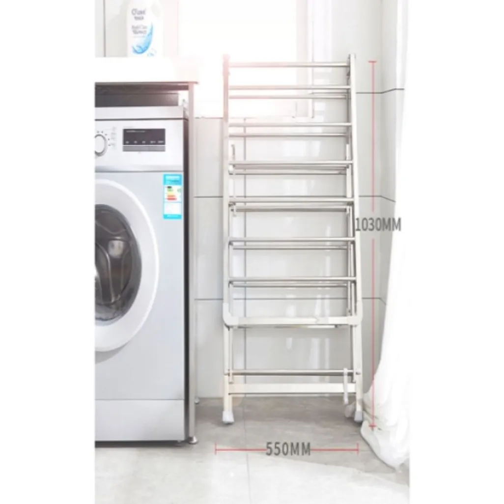 The Pan Pan Stainless Steel Clothes Dryer is a drying rack that provides hanging space to dry and air your laundry indoors. Will fold flat for easy and neat storage, and it is ideal for drying all types of clothes, including blankets and shoes.