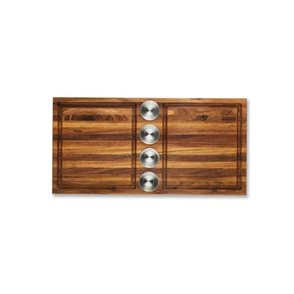 Prepare your meat and vegetables on the My Butchers Block Meat Board, which has four stainless steel bowls, that can hold your spices. There are juice grooves, that will catch all unwanted juices.