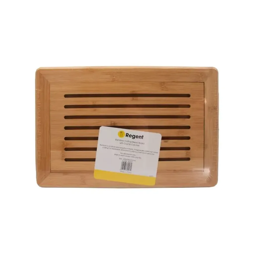 The Regent Bamboo Bread Board with Crumb Catcher is a versatile and eco-friendly kitchen essential, crafted from sustainable natural bamboo. Perfect for cutting, slicing, and chopping a variety of foods, its slatted design helps catch crumbs, making cleanup easy and efficient.
