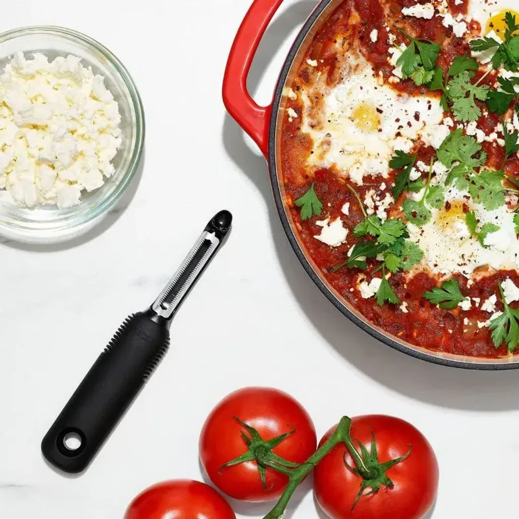 The OXO Good Grips Serrated Peeler features a stainless steel blade, and it is ideal for peeling soft produce. This stainless steel peeler is dishwasher safe, and it will allow you to easily peel soft fruits and vegetables, with minimal bruising.