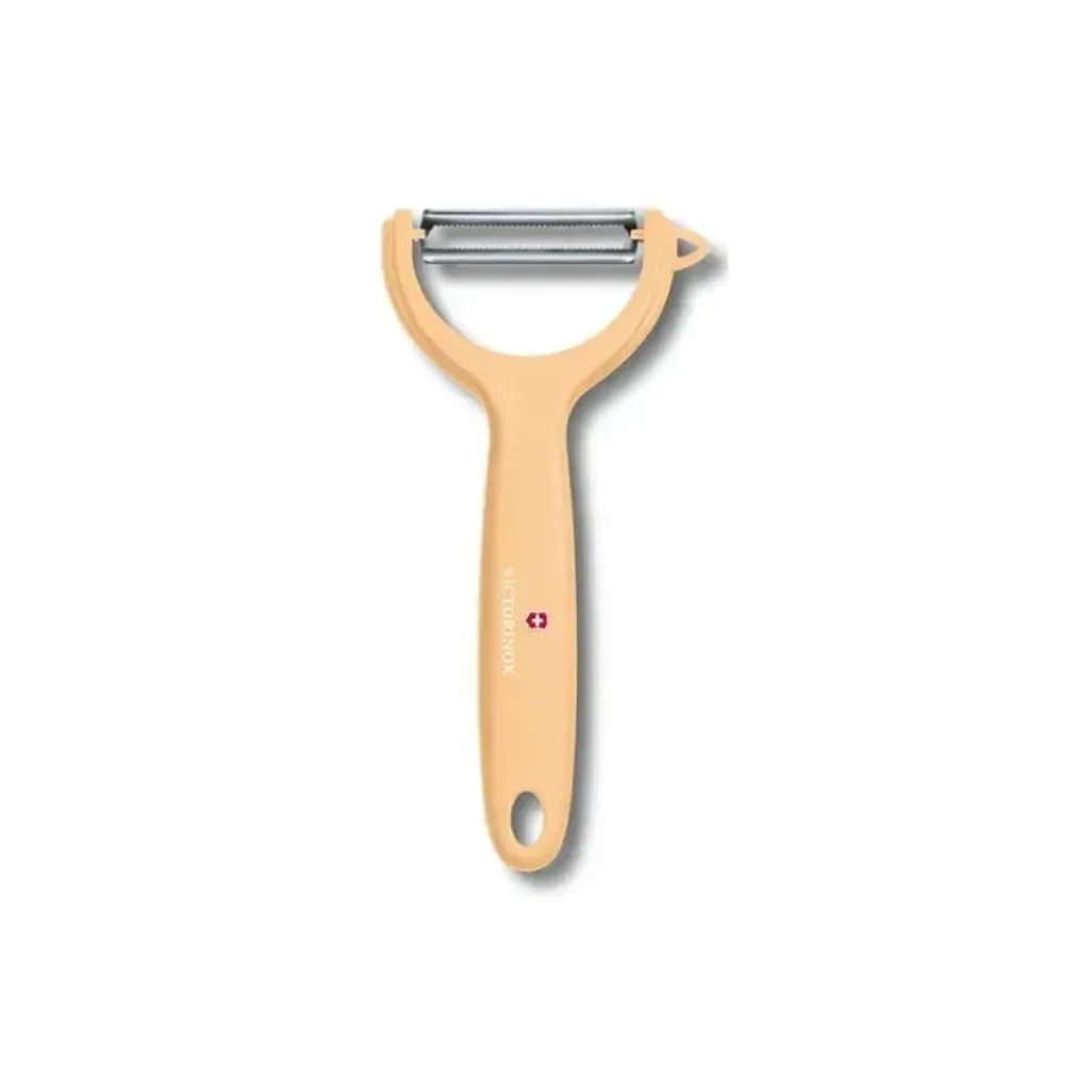 Effortlessly peel with the Victorinox Swiss Classic Light Orange Kiwi Peeler. With the polypropylene and stainless steel micro serrated edge, it shouts quality. Peel kiwi, fruits and veggies with its ultrasharp double-edged blade. Dishwasher safe.
