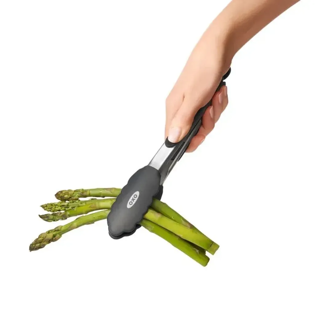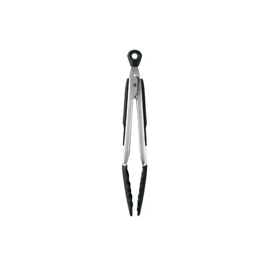 The OXO Good Grips 9-Inch Silicone Tongs is made of stainless steel and has a silicone head, that has a heat resistance of up to 315°C. You can use it for cooking, tossing, and transferring food, and it is dishwasher-safe.