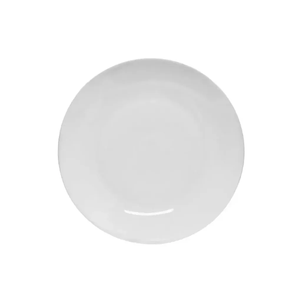 The Eetrite Just White Coupe Dinner Plate is durable and lightweight, making it a must-have for any modern kitchen. This 27cm plate is both microwave and dishwasher-safe