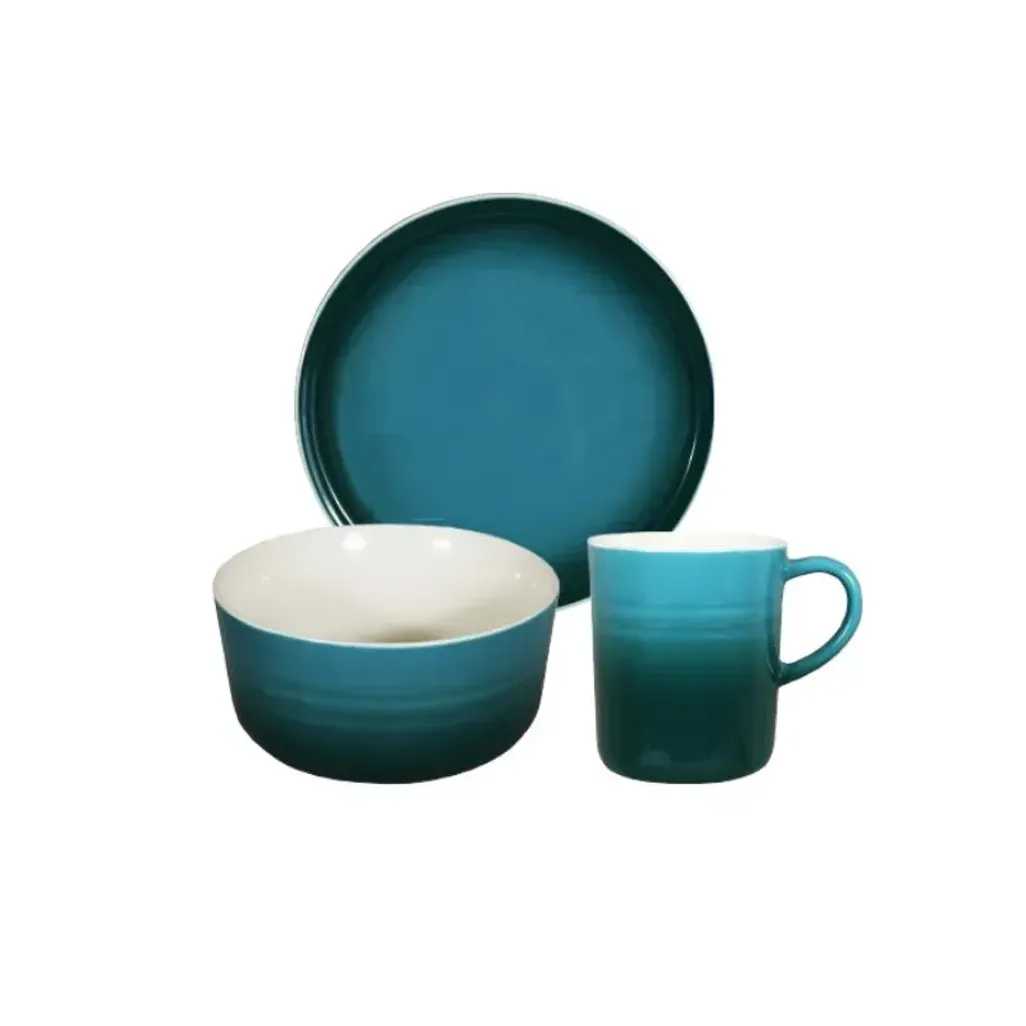 The perfect breakfast ensemble for your tea, coffee, cereal, fruit and croissant. This Funkilines Ceramic 3 Piece Breakfast Set features a lovely blend of blue and green colors. The collection includes 1x mug, 1x bowl and 1x side plate.