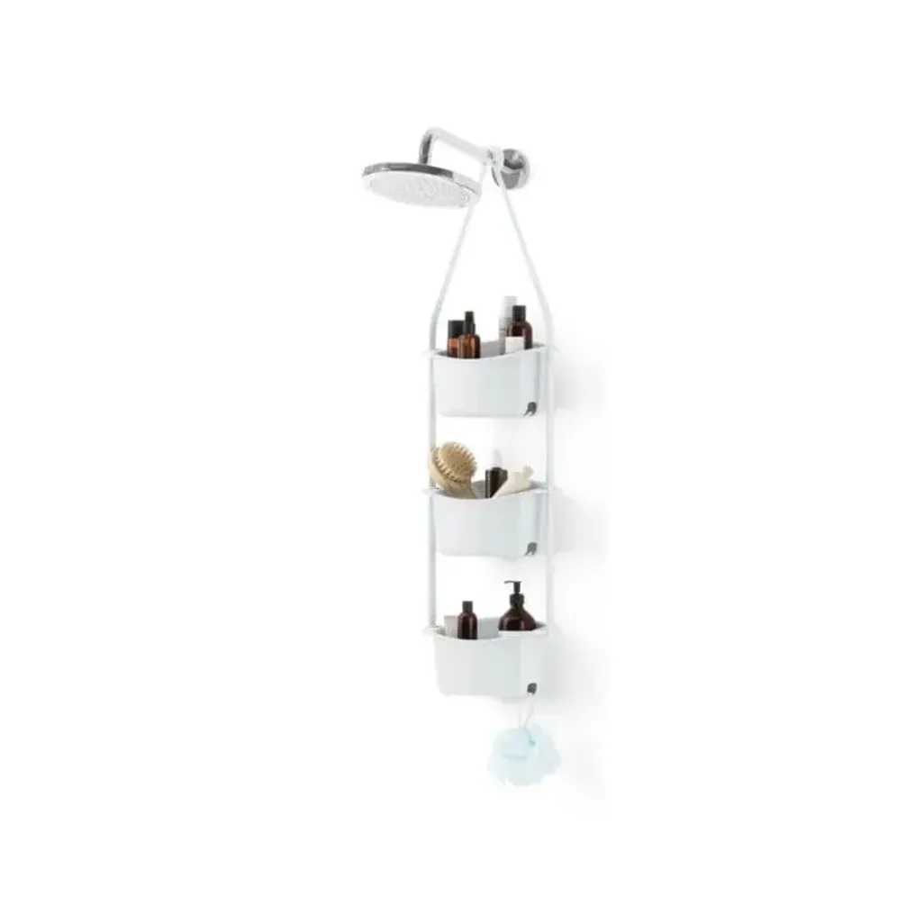Featuring three wide-brimmed, self-draining polypropylene baskets and three hooks for hanging loofahs and more, this shower caddy offers a comprehensive storage solution for all your shower essentials.