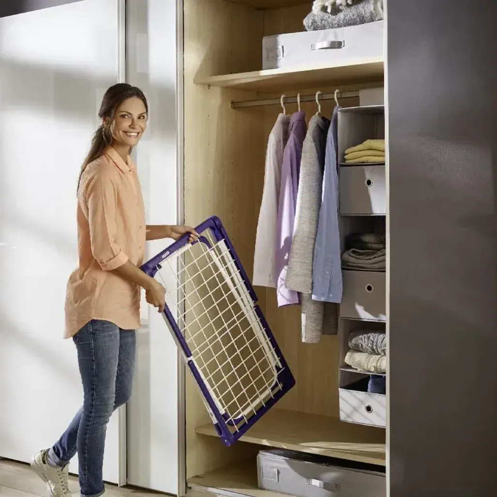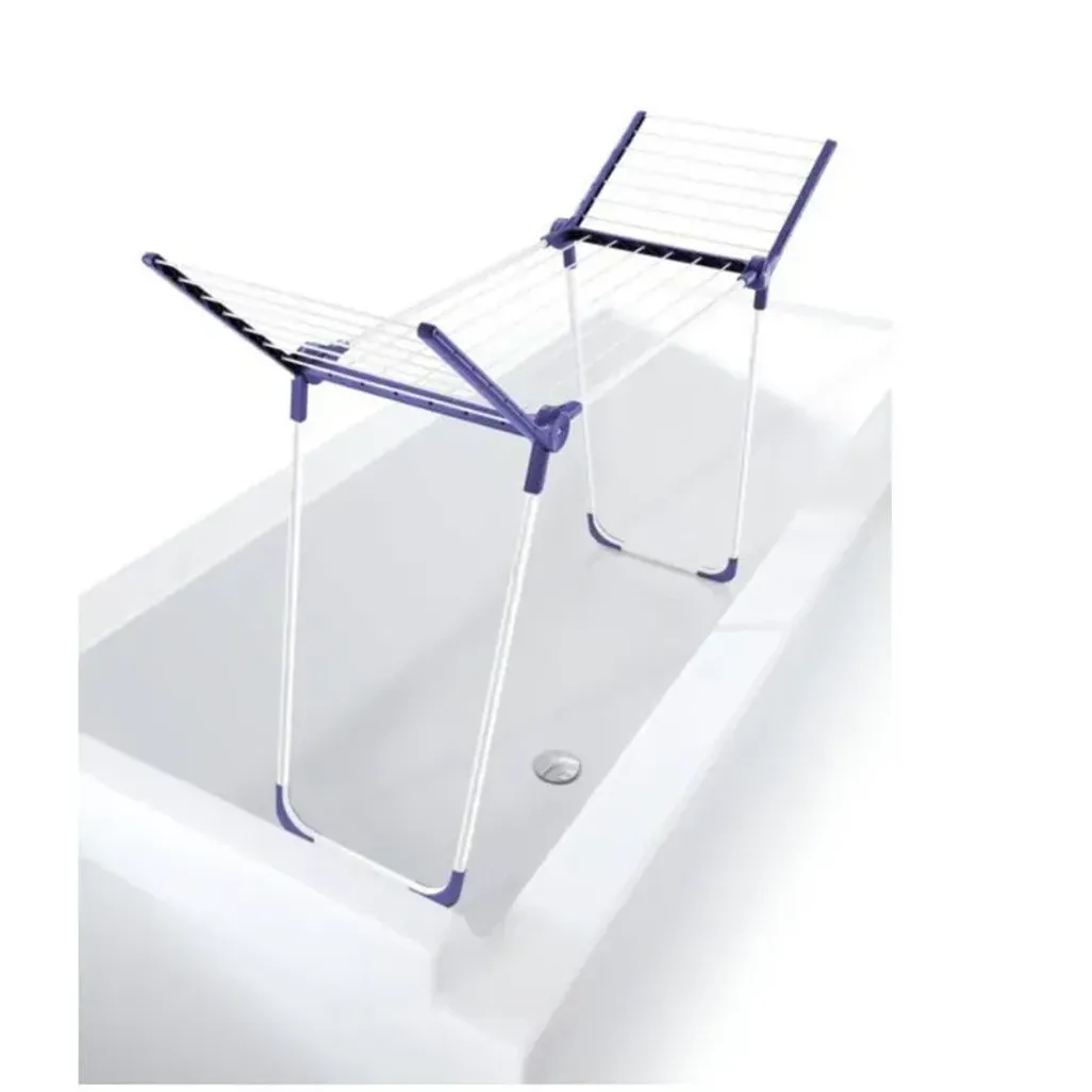 Due to its compact design, it fits effortlessly into all standard bathtubs and with foldaway side wings extends the drying length to 12 meters and, with a height of 93 cm, is suitable for long laundry items. Despite its small size the stable drying bars and stable legs prevent sagging, even with heavy laundry items and the entire dryer folds easily and can be stored when it's done being used.
