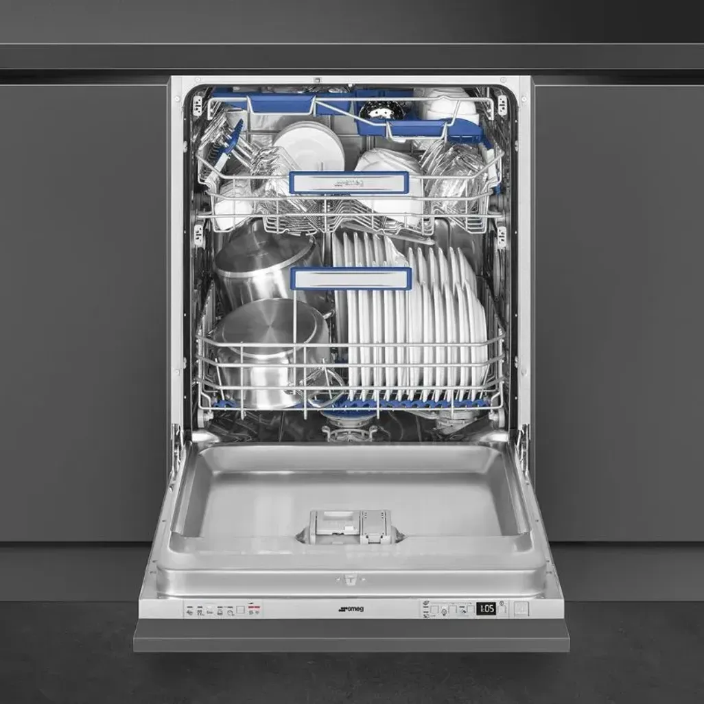 This Smeg Built-In Dishwasher has a Total Acquastop protection in place, that will immediately cut the water supply if there is a leak in the hose. By monitoring the water levels in the machine, it will stop the supply of water when necessary.