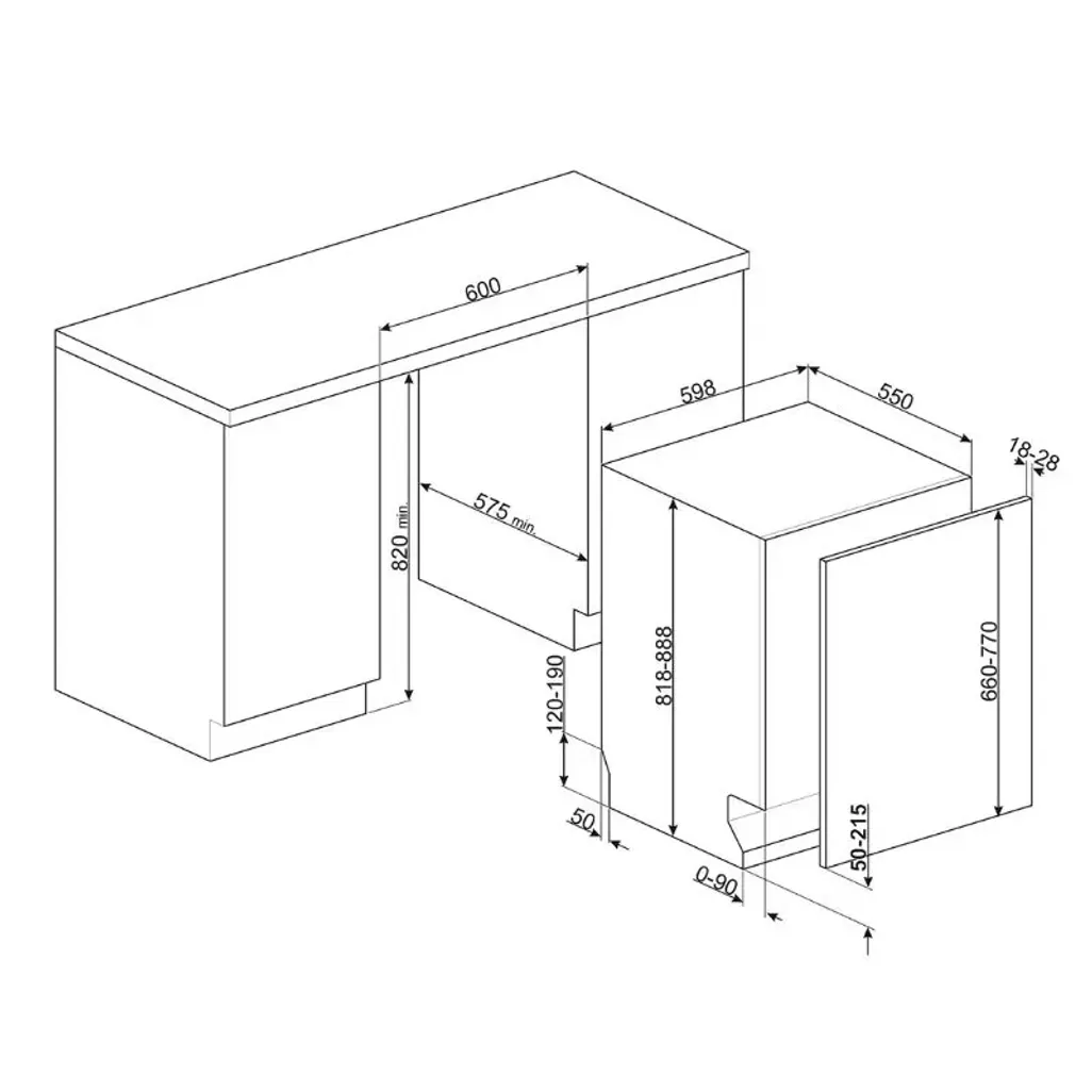 The dimensions of the Smeg 14 Place Built-In Dishwasher are H 818mm x W 598mm x D 545mm. This Smeg Dishwasher has a 3-year guarantee.