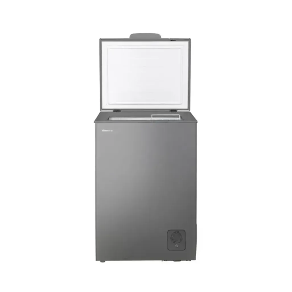 The Hisense 95L Metallic Chest Freezer has an aluminium interior and metallic spring-load hinges, for easy opening of the chest freezer. With a 95L capacity, this metallic chest freezer is ideal for a home or apartment consisting of two people.
