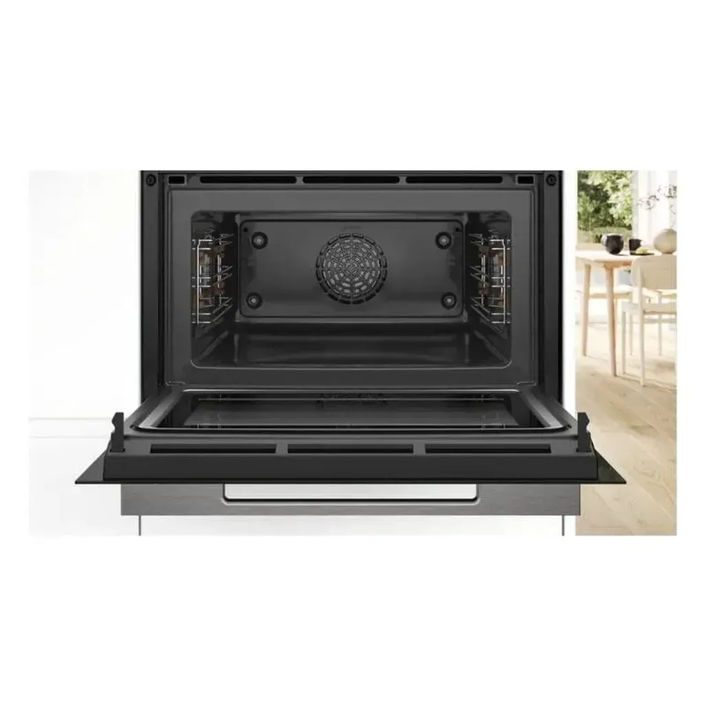 Worried about overcooking? The Assist Function of the Bosch 45L Series 8 Compact Microwave Oven automatically switches off the oven at the end of your selected program, notifying you via a signal or through the Home Connect app. The Assist Function takes the hassle out of cooking by selecting the optimal heating mode, temperature, and preparation time for your chosen dish, ensuring perfection at the push of a button.