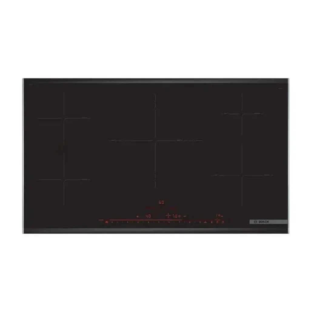 Achieving the perfect fry has never been easier with the PerfectFry sensor of the Bosch 90cm Induction Hob, which continuously regulates and adjusts the temperature to ensure your meat is cooked exactly the way you like it—whether rare, medium, or well done. And when you're in a hurry, the PowerBoost feature kicks in to speed up your cooking, heating up to 35% faster for those quick, easy meals.