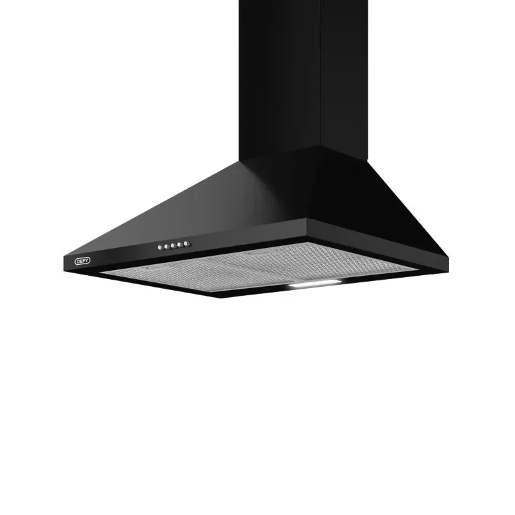 Bring style and efficiency to your kitchen with the Defy 60cm Black Chimney Hood, a perfect blend of modern design and powerful performance. It has a wall-mounted design for a sleek, space-saving look. This chimney hood doesn’t just enhance your kitchen’s aesthetic; it ensures a cleaner, fresher cooking environment. With a B energy rating, that delivers excellent performance while keeping energy consumption low, making it as eco-friendly as it is effective.