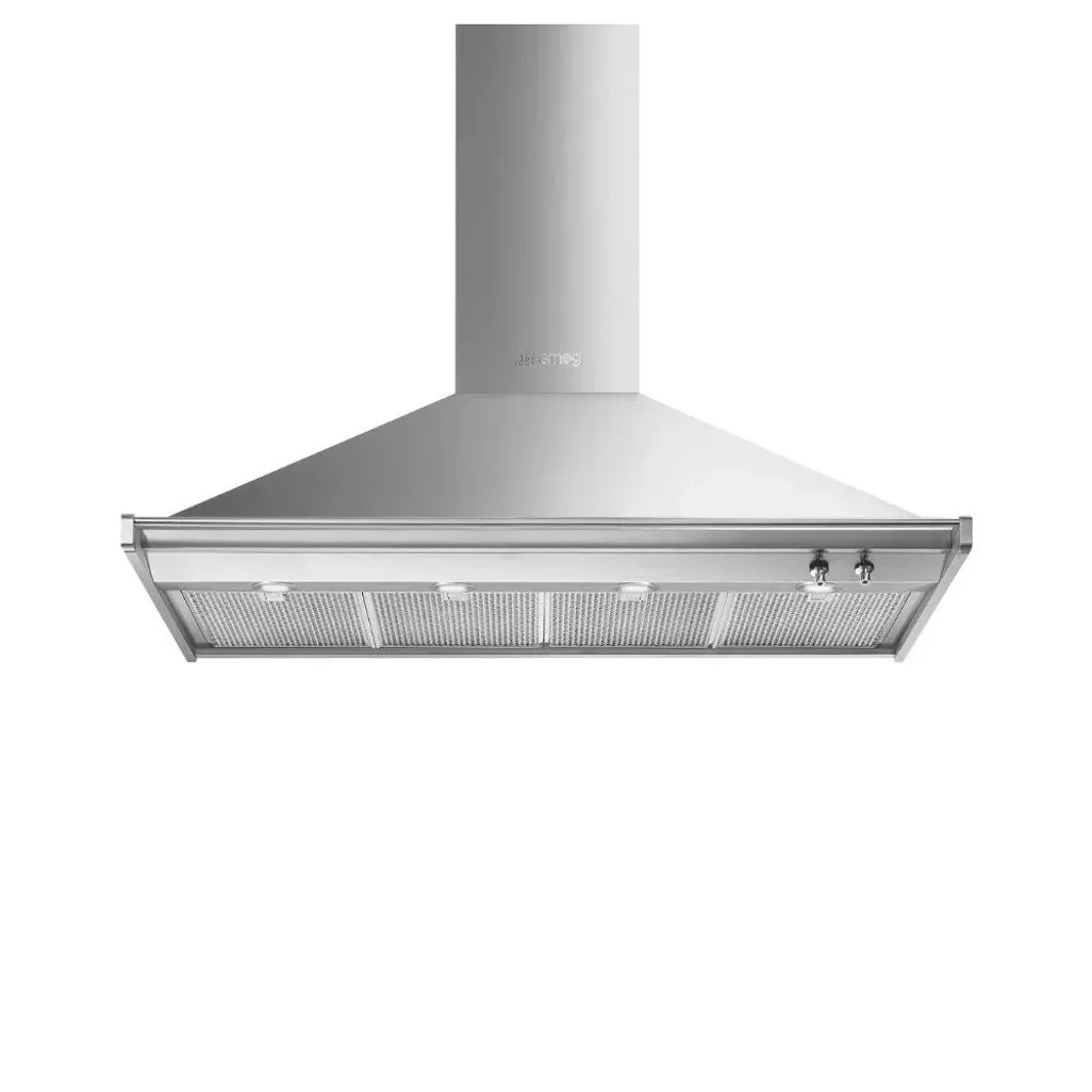 The dimensions of the Smeg 120cm Classic Extractor Hood are H 800mm x W 1200mm x D 555mm, and it has a 3-year guarantee.