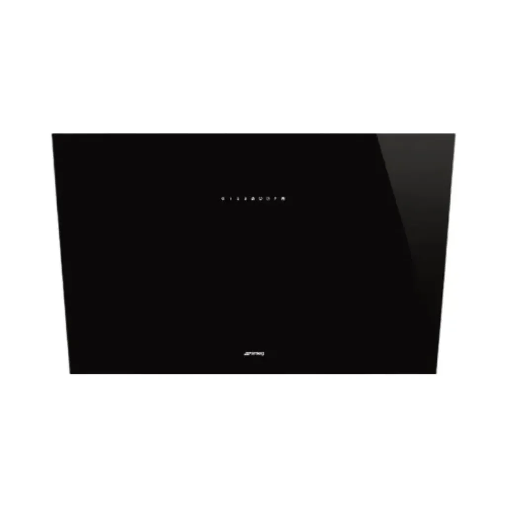 The dimensions of the Smeg 90cm Black Glass Slanted Extractor are H 459mm x W 895mm x D 439mm, and it has a 3-year guarantee.