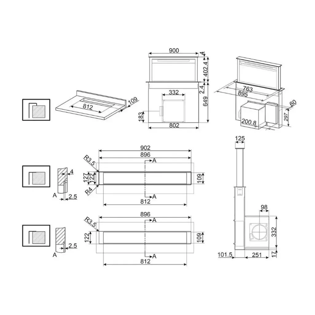 Dimensions for this Smeg 90cm Universale Downdraft Extractor are H 1051mm x W 900mm x D 352mm and it comes with a 3-year guarantee.