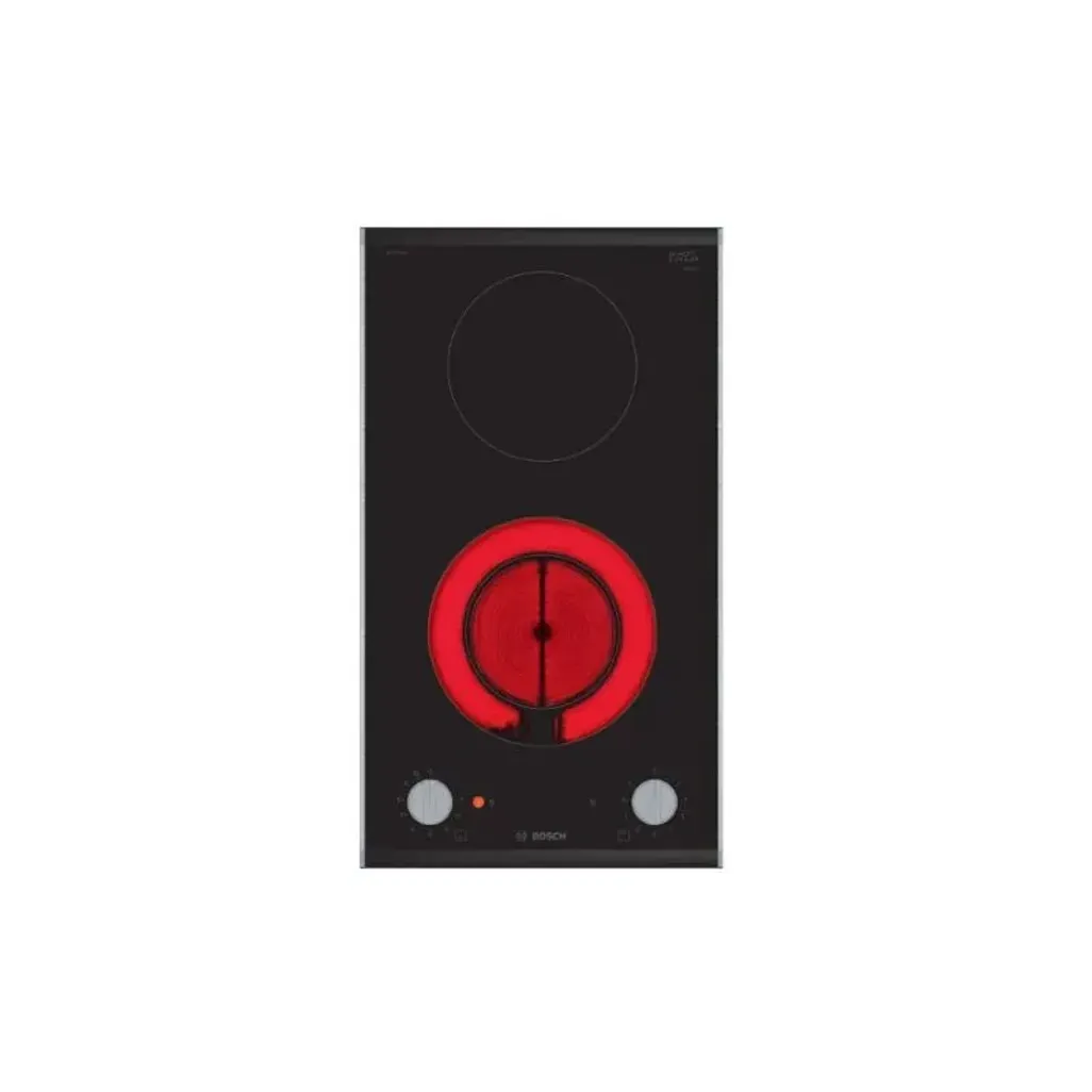 When space is limited, but you still want the best hob option, this Bosch 30cm Series 2 Ceramic Domino Hob is the answer. It offers 2 heating elements, 9 power levels options with a total power of 3200W. This integrated hob has a ceramic surface with a frame design. The 30cm cooking zone space is ideal for pots or pans. Using a hob increases cooking speed and it's easier to clean.