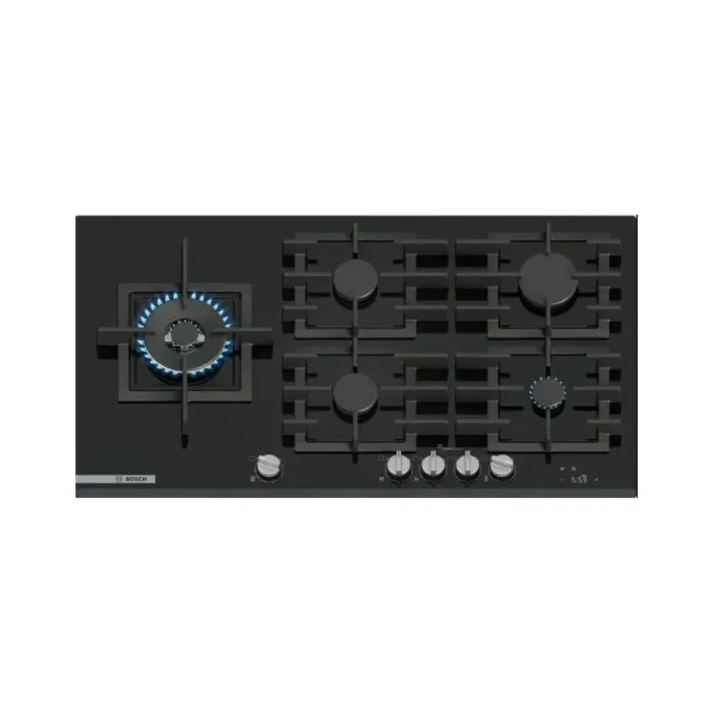 With 5 burners, this Bosch 90cm Series 8 Gas Hob is designed to make cooking easier and fun. The cast iron pan support frame is created for stability and to hold your pots and pans in place. This hob is equipped with a flame gas cut-off safety function. The moment the flame goes out, the hob will detect the change and will then immediately cut off the gas supply.