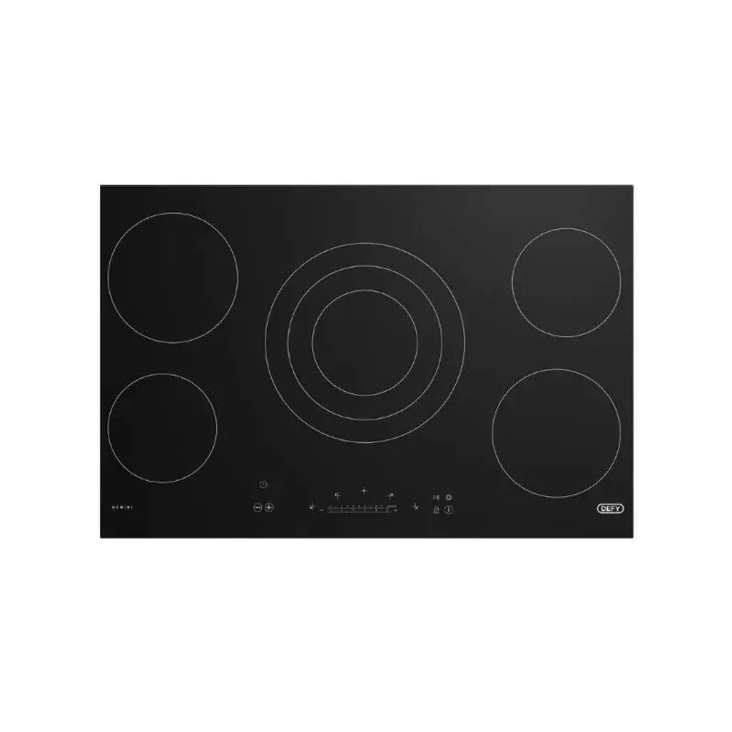 Cook gourmet meals for your family and friends with the Defy 82cm Gemini Vitroceramic Hob. It has five vitroceramic plates, of which one is a triple zone, that will extend your cooking possibilities. This Defy hob has touch control switches that combine innovation with a modern touch of finesse in one user-friendly device. In addition, it is compatible with any Defy eye-level oven.