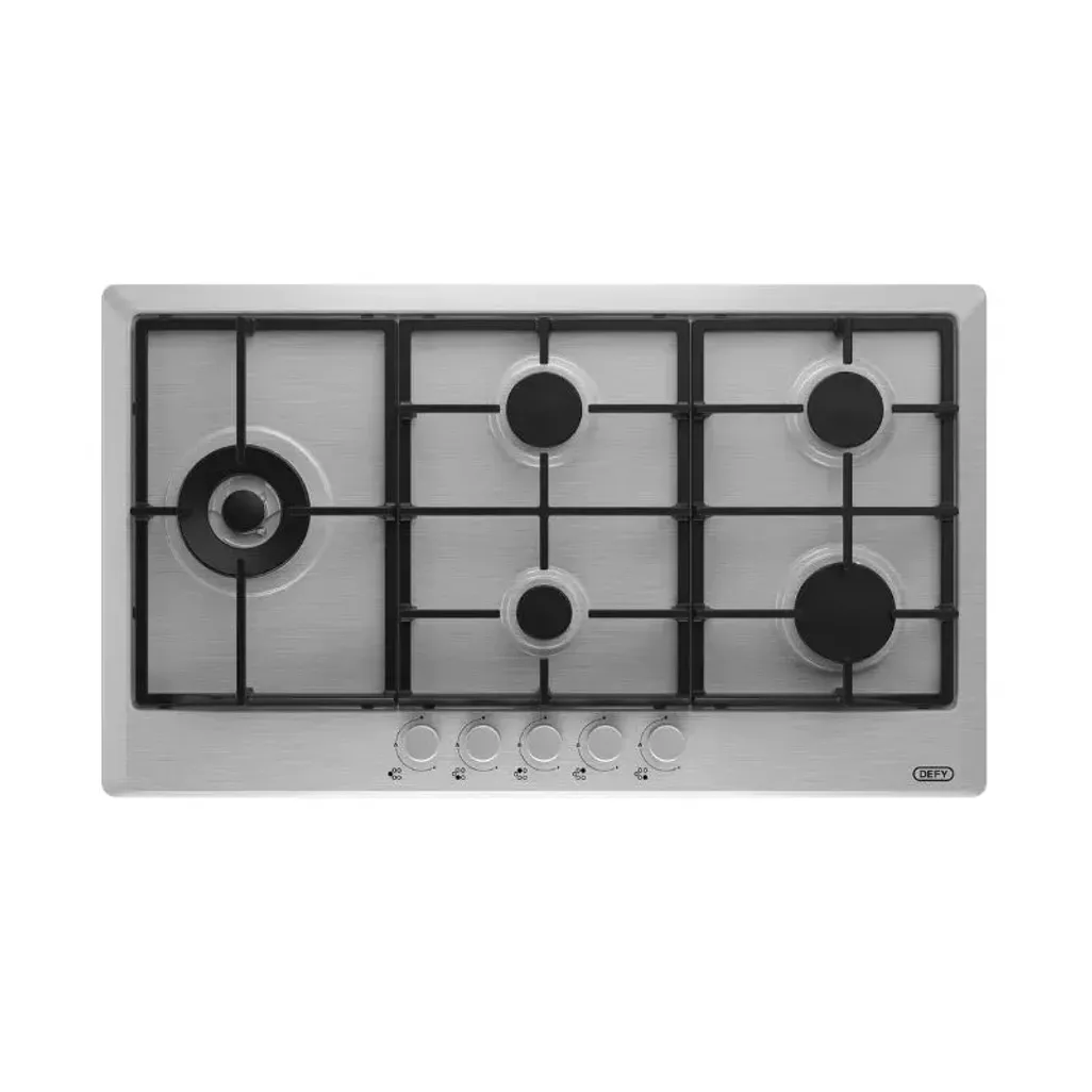 The Defy 90cm Stainless Steel Gemini Gas Hob has 5 gas burners, including a 3.3KW wok burner that uses twin-flame technology to elevate your cooking experience. The 90cm Gemini Hob provides an uninterrupted heat source and it has a durable support surface for pots and pans to provide a better cooking experience.