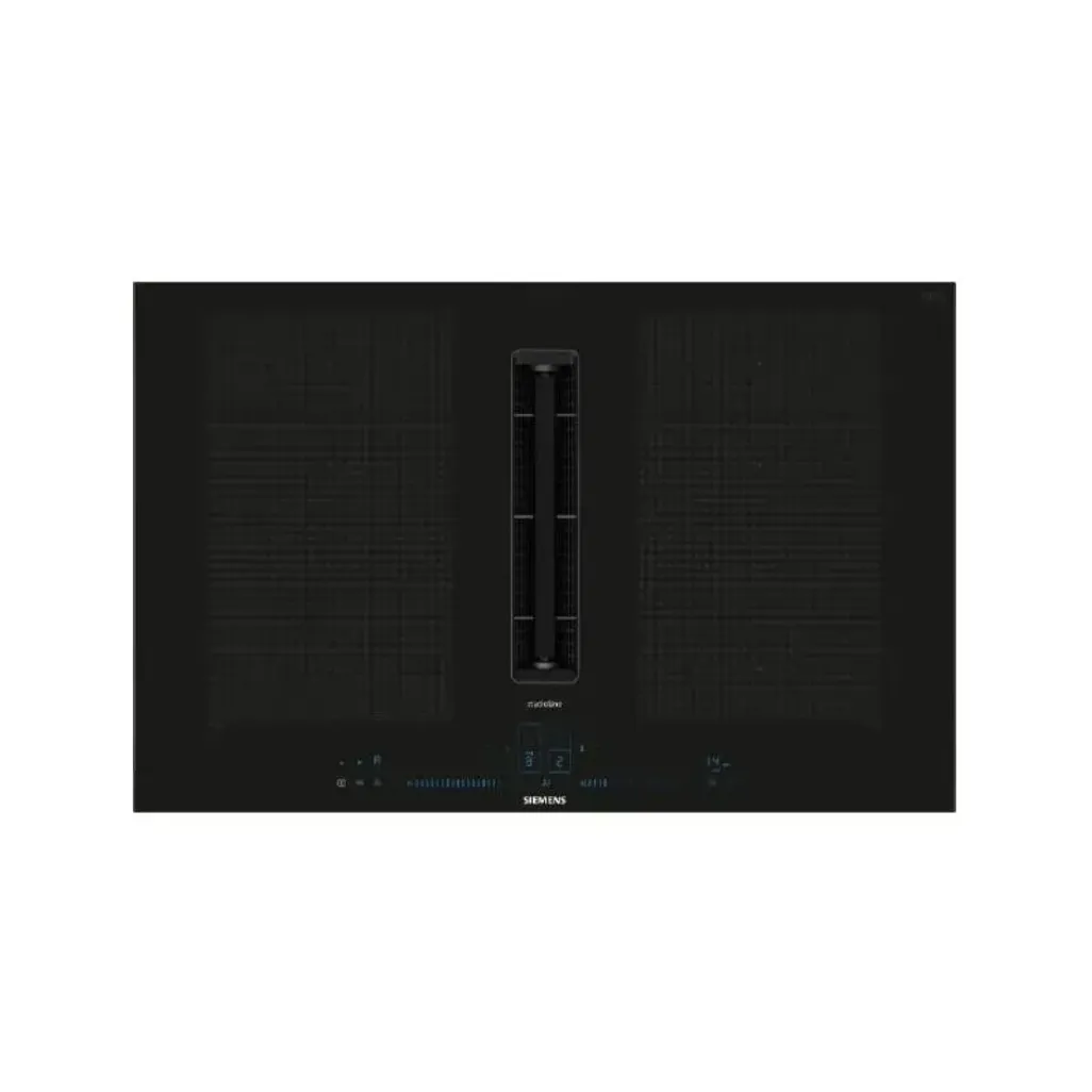 The Siemens 80cm Studioline Ventilated Induction Hob flexInduction is here to automatically extend to accomodate extra large cookware up to 24cm. This means that if one zone is not big enough, the hob will take control and activate more indicators for even heating. This feature can also be used for griddle plates up to 40cm long.