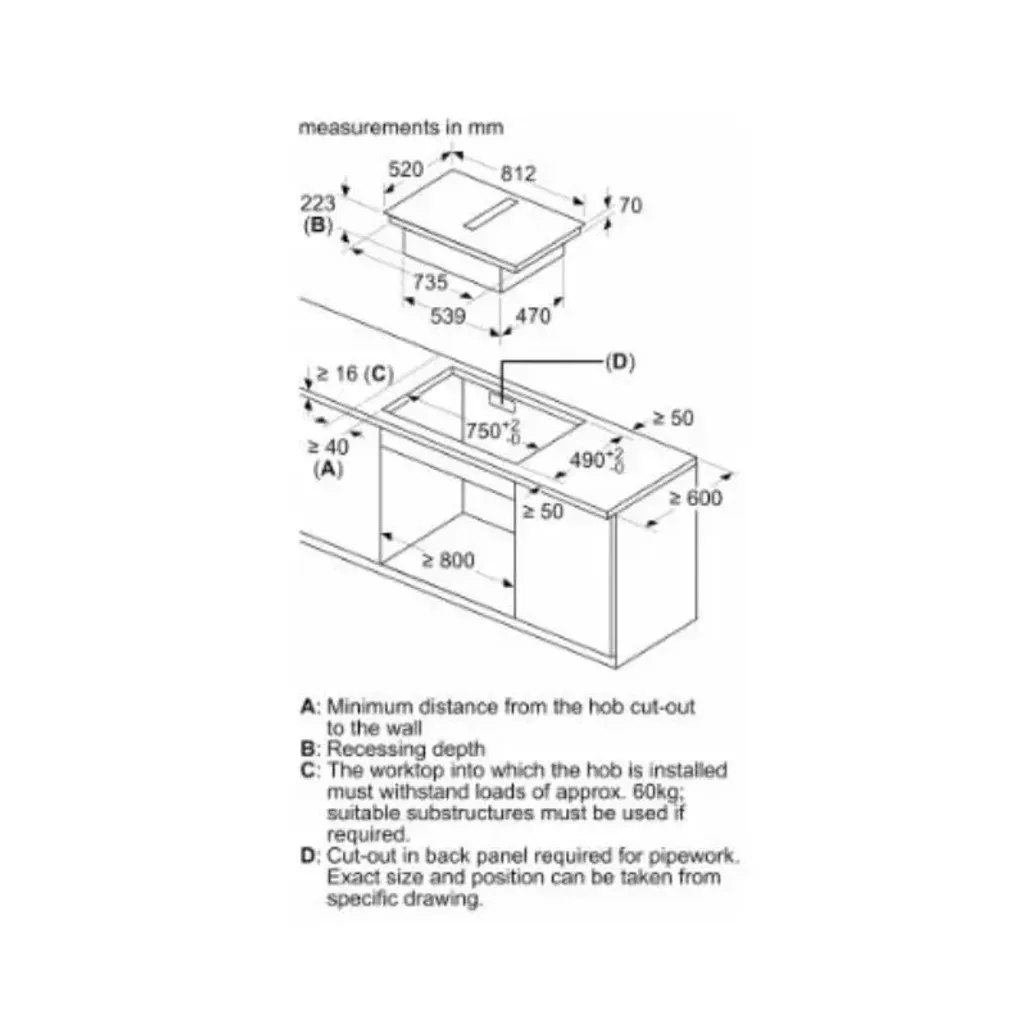 The dimensions for this Siemens 80cm Studioline Ventilated Induction Hob are H 223mm x W 812mm x D 520mm. A 5 year guarantee is offered with this hob.