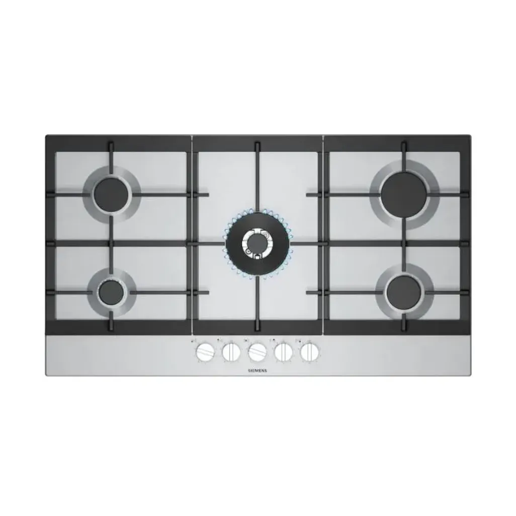 This Siemens 90cm 5 Burner Gas Hob offers you 4 gas burners along with 1 WOK burner. You are able to cook a variety of meals at the same time. It also comes with StepFlame Technology for precise flame control in 9 steps.