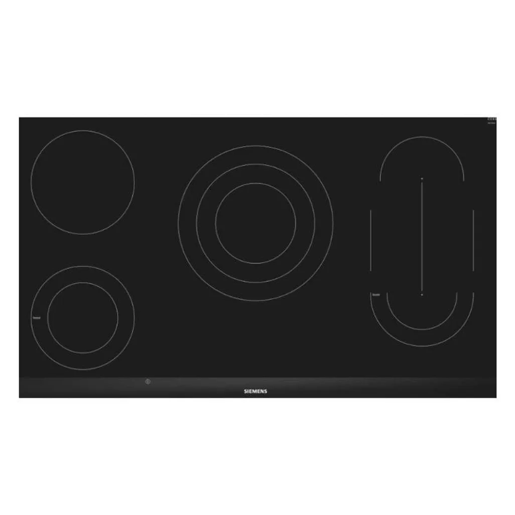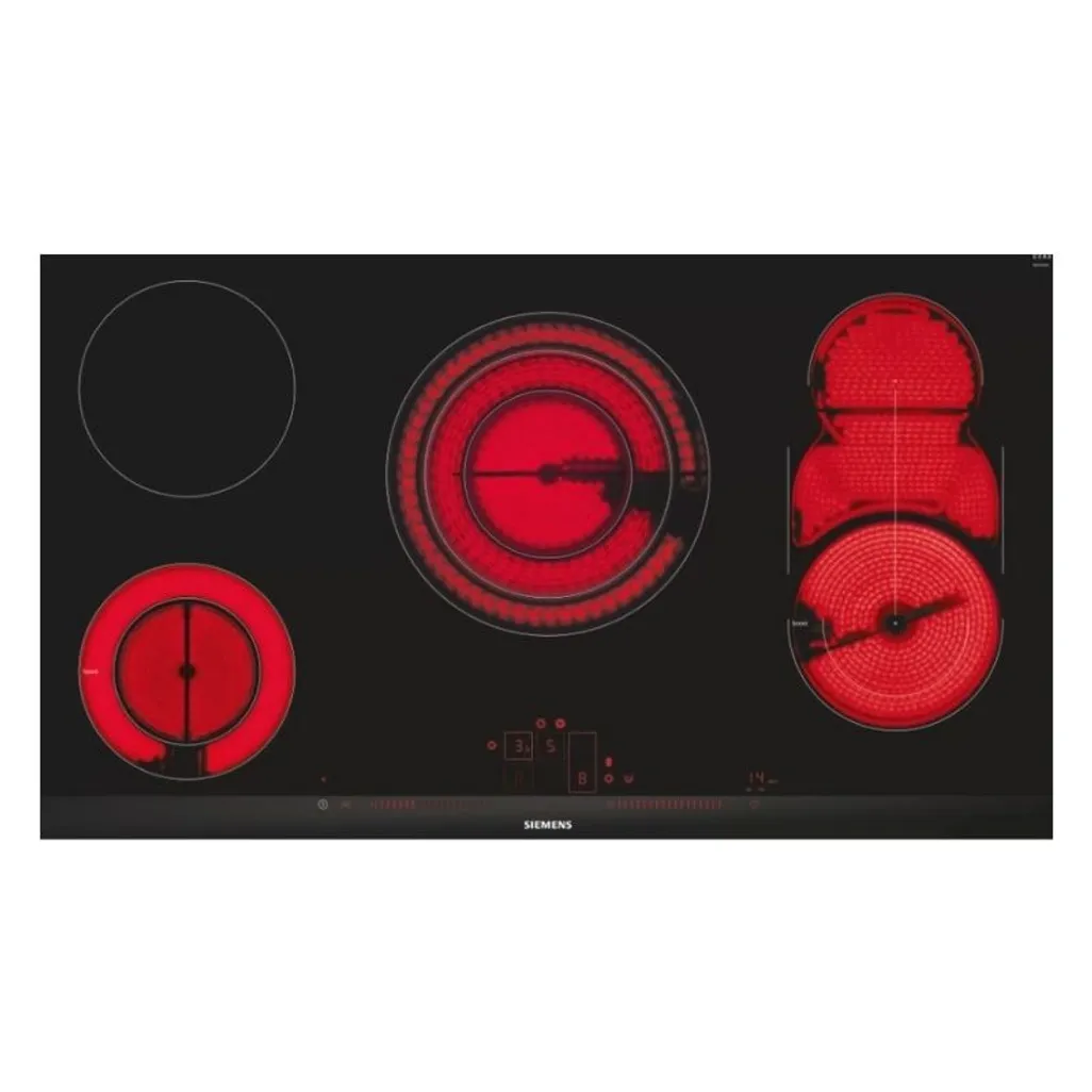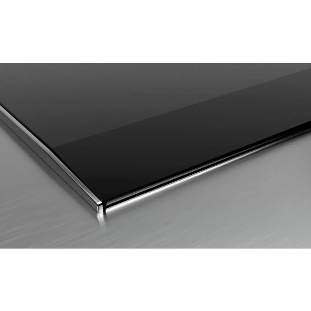 The Siemens 90cm Electric Hob has front facette with side trim design with 5 HighSpeed cooking zones, including a triple zone, dual zone and a combi zone, that you can make use of to cook meals for your friends and family. With a dual lightSlider, you can easily and intuitively operate the 90cm hob. In addition, you can simply combine two cooking zones to a large one, for optimal heat distribution when cooking even with large pots and pans.