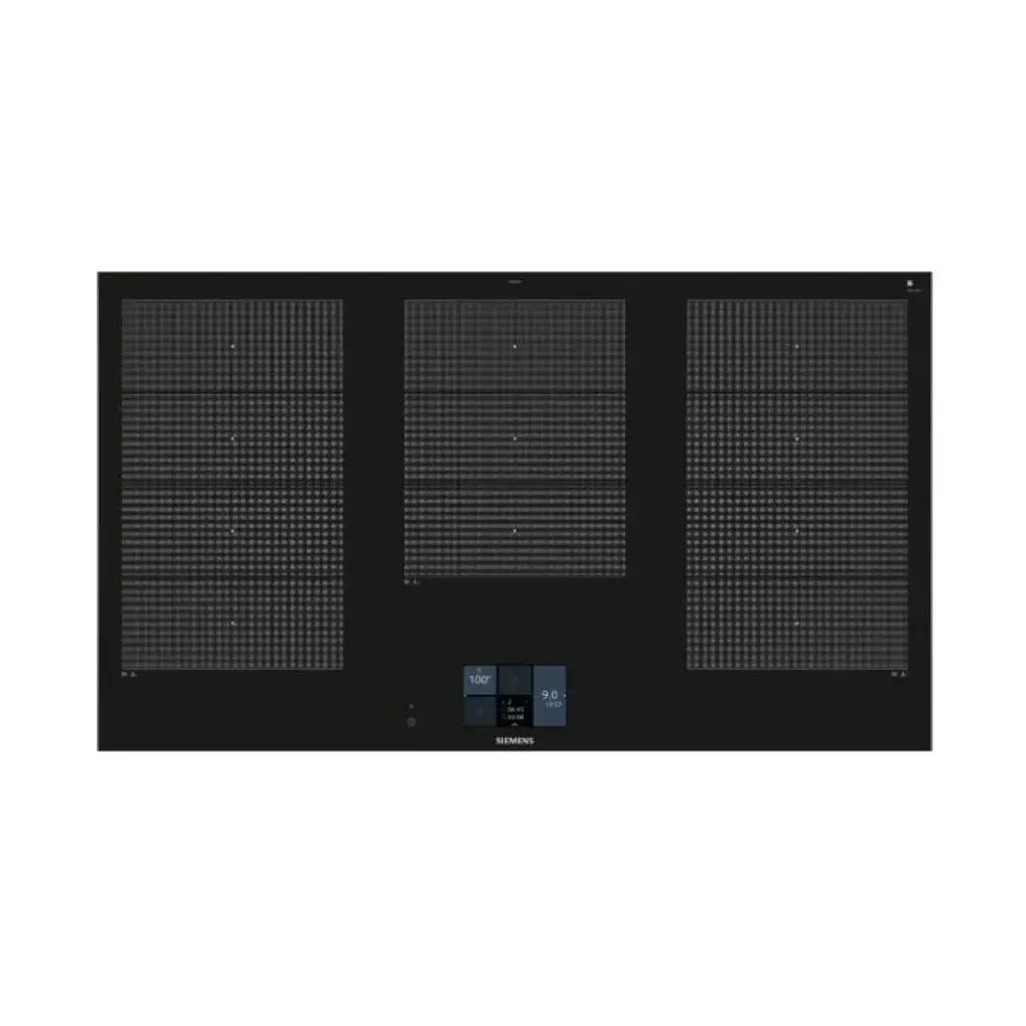 The Siemens 90cm Electric Induction Hob flexInduction is here to automatically extend to accomodate extra large cookware up to 24cm. This means that if one zone is not big enough, the hob will take control and activate more indicators for even heating. This feature can also be used for griddle plates up to 40cm long.