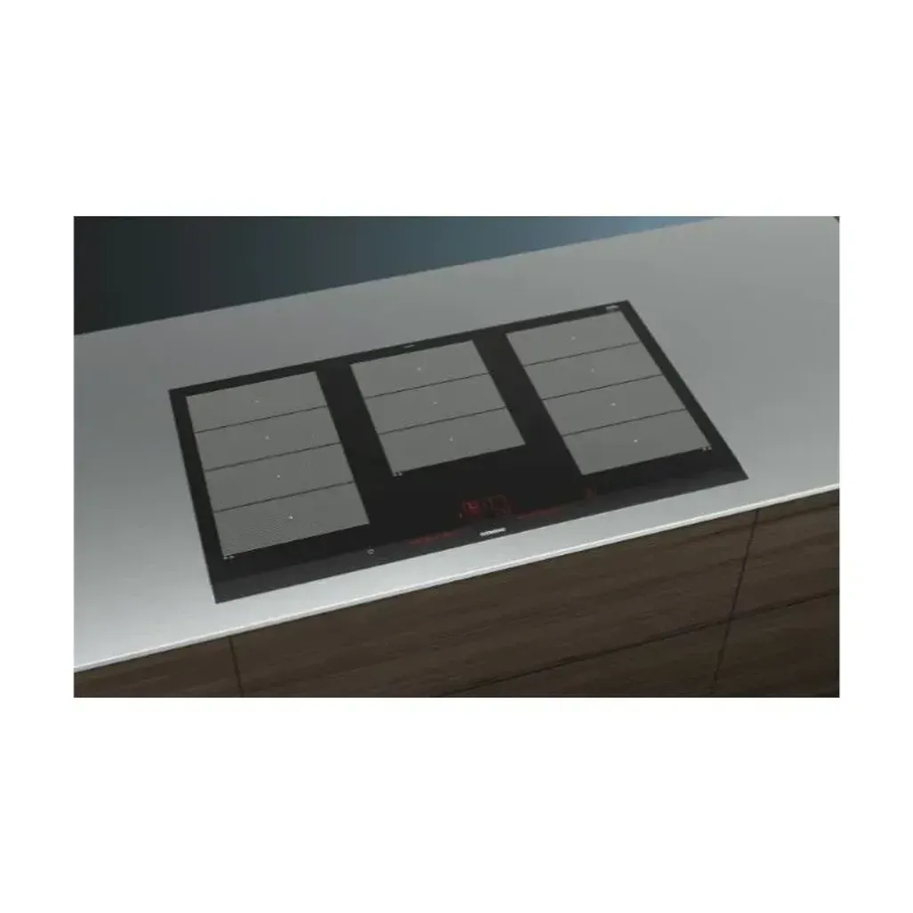 The Siemens 90cm Induction Hob flexInduction is here to automatically extend to accomodate extra large cookware up to 24cm. This means that if one zone is not big enough, the hob will take control and activate more indicators for even heating. This feature can also be used for griddle plates up to 40cm long.