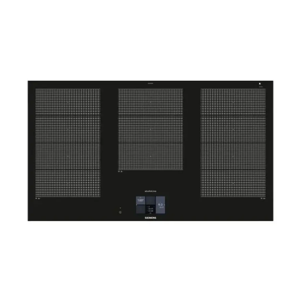 Control your Siemens 90cm Studioline Induction Hob cooktop with the TFT touch display that will allow access and operation of your cooktop function easy and will ensure good readability from any perspective.