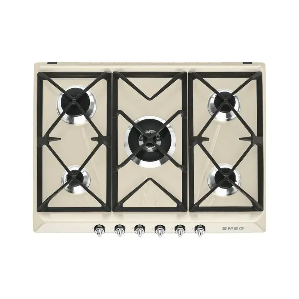 The dimensions of this Smeg 75cm Cream Victoria Gas Hob are W 685mm x D 500mm, and it has a 3-year guarantee.