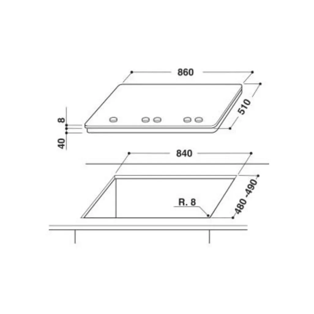 H 48mm x W 860mm x D 510mm |