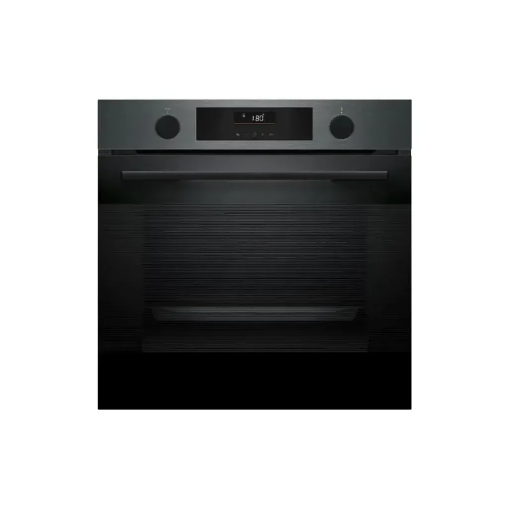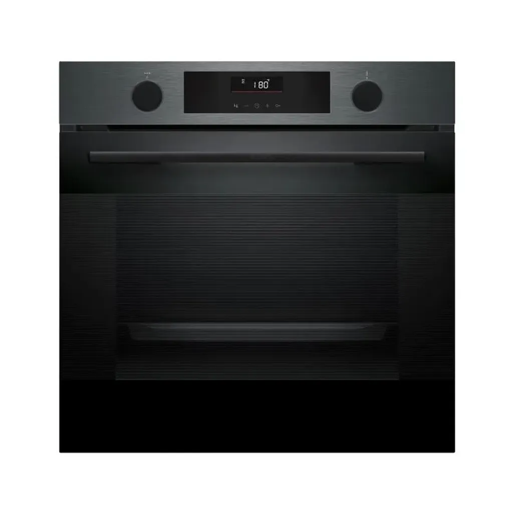 The dimensions of this Bosch 60cm Black Inox Built-In Oven are H 595mm x W 594mm x D 548mm, and it has a 5-year warranty.