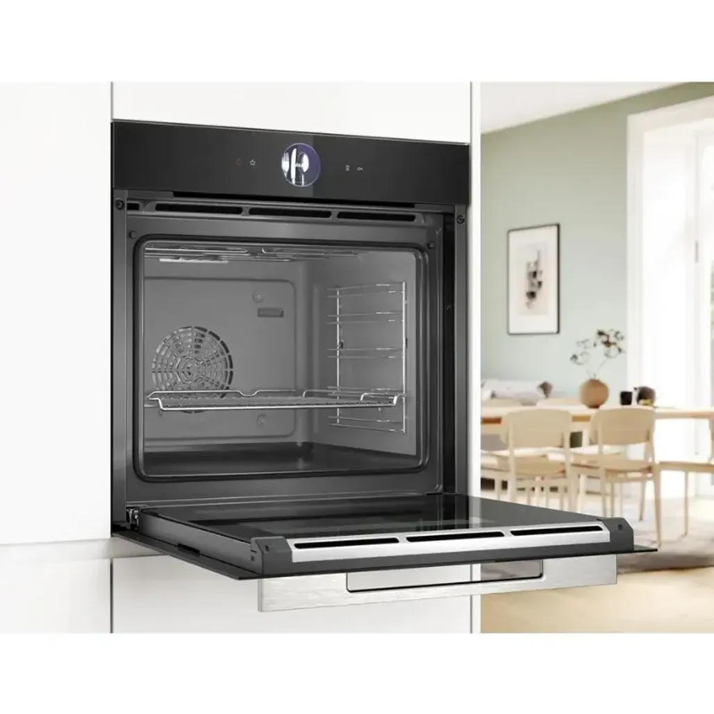 The dimensions of this Bosch 60cm Series 8 Oven are 595mm x 594mm x 548mm, and this Bosch Oven has a 5-year guarantee.