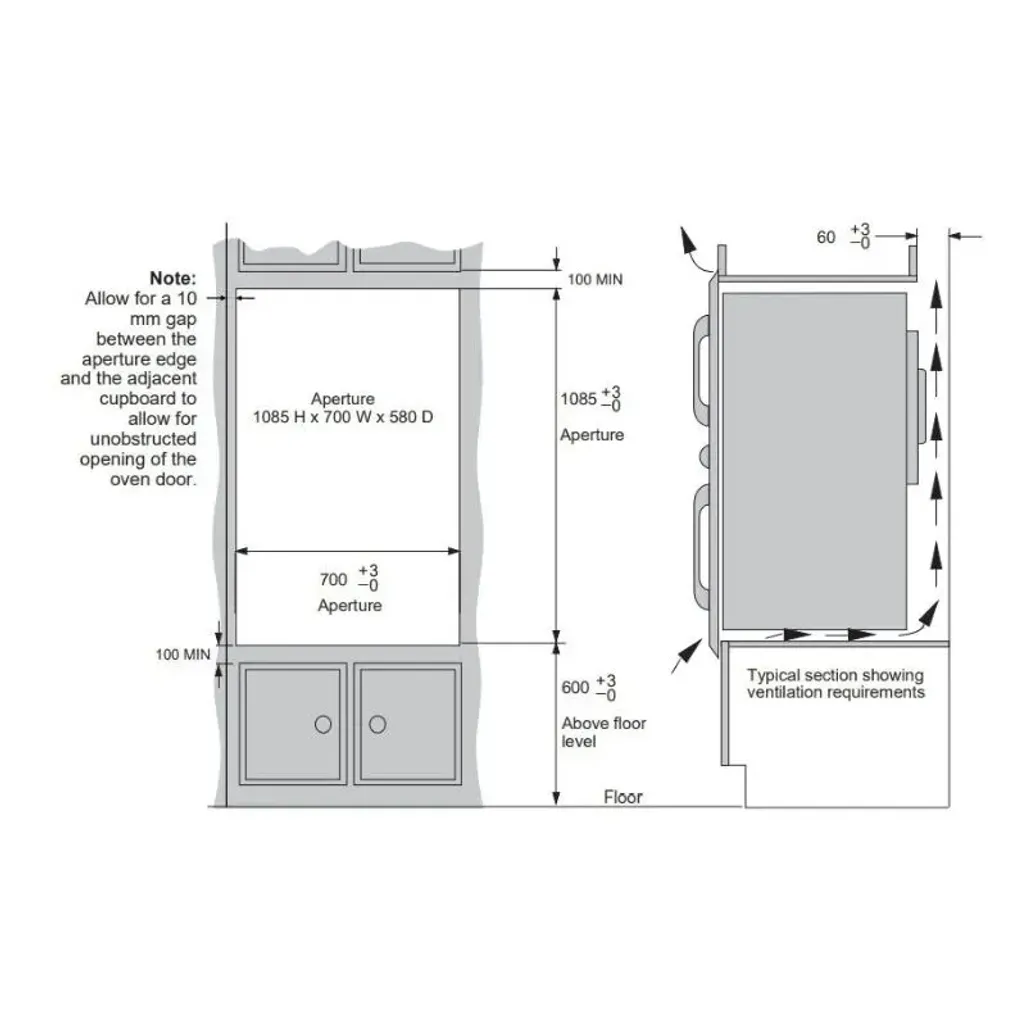The dimensions of the Defy Gemini Thermofan+ Double Oven are H 1090mm x W 730mm x D 580mm. This Defy Oven has a 2-year warranty, and you can register for an additional 1-year warranty online.