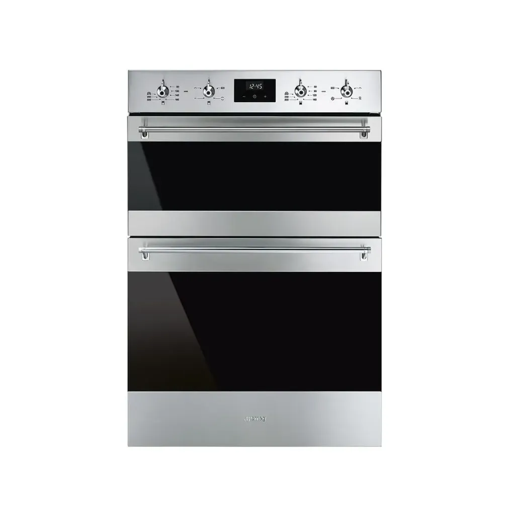 The dimensions of the Smeg 60cm Classica Built-in Double Oven are H 884mm x W 597mm x D 570mm, and it comes with a 3-year guarantee.