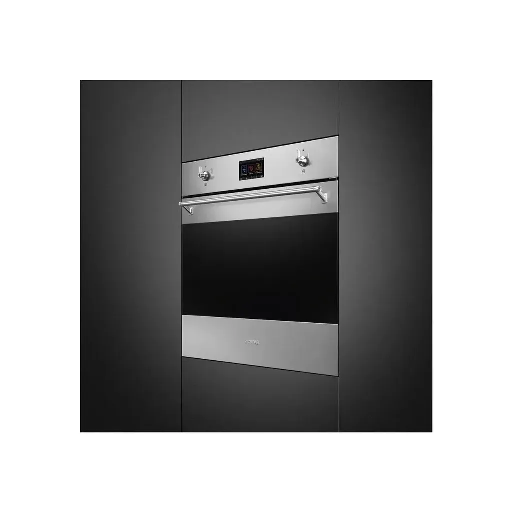 Dimensions for this Smeg 60cm Classica Omnichef Galileo Oven are H 597mm x W 592mm x D 548mm and it has a 3 year guarantee.