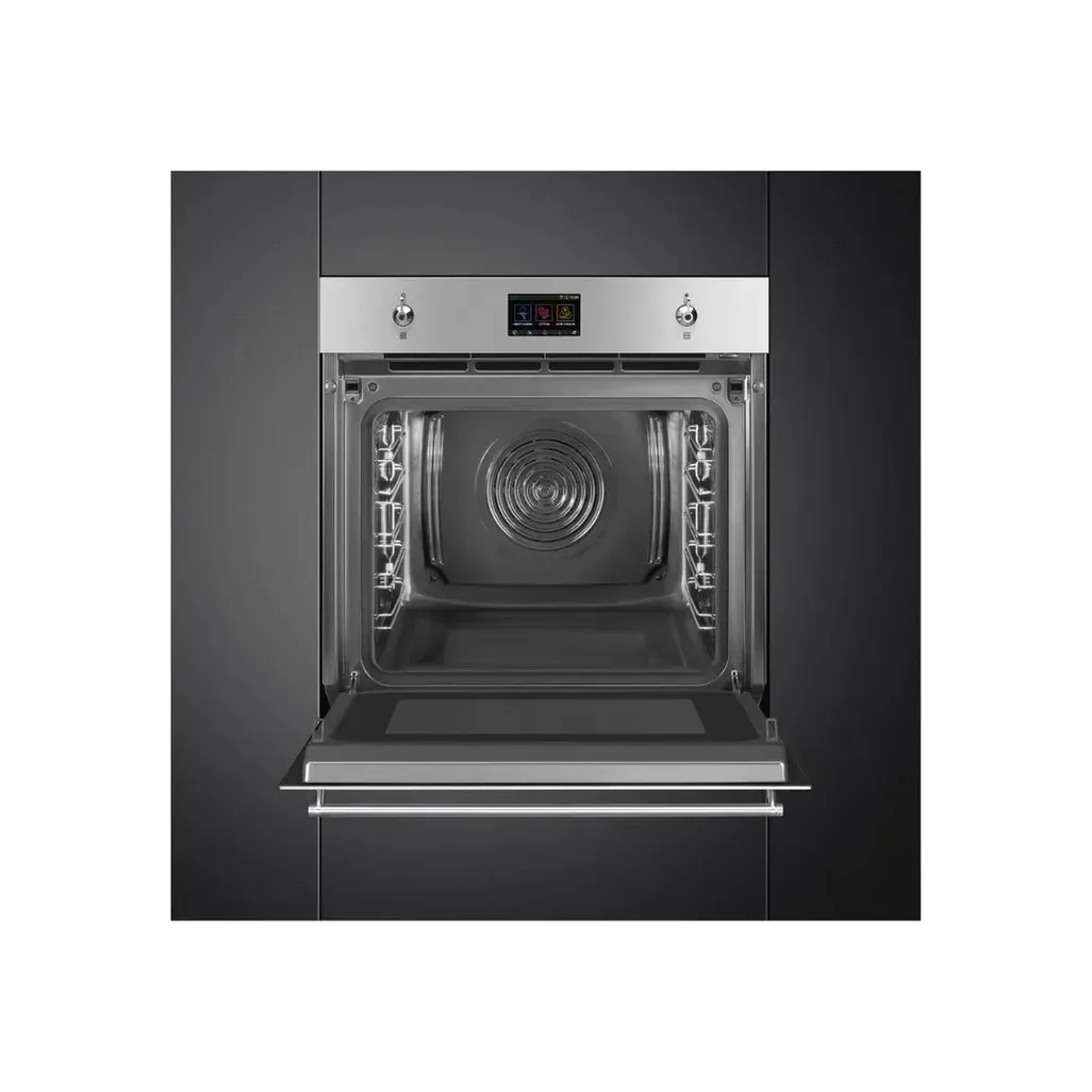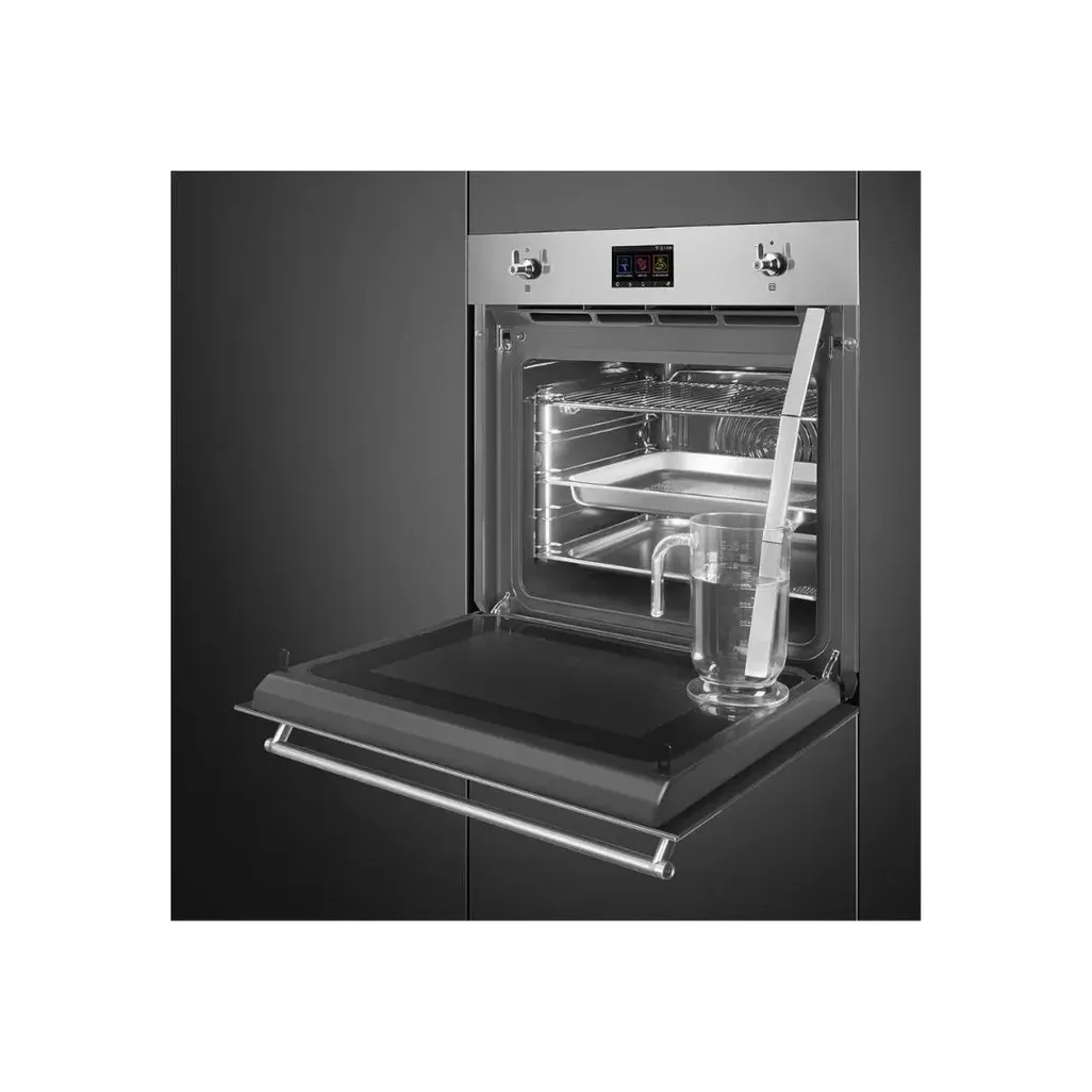 With 150 automatic programs, thanks to smartcooking, this Smeg 60cm Classica Omnichef Galileo Oven will make cooking a more pleasant and enjoyable experience. 26 Cooking functions and 10 customisable recipes, you are able cook dishes with different cooking methods and be ready at the same time with the SameTime program. During microwave cooking, condensation inside the oven will be reduced due to its double chimney.