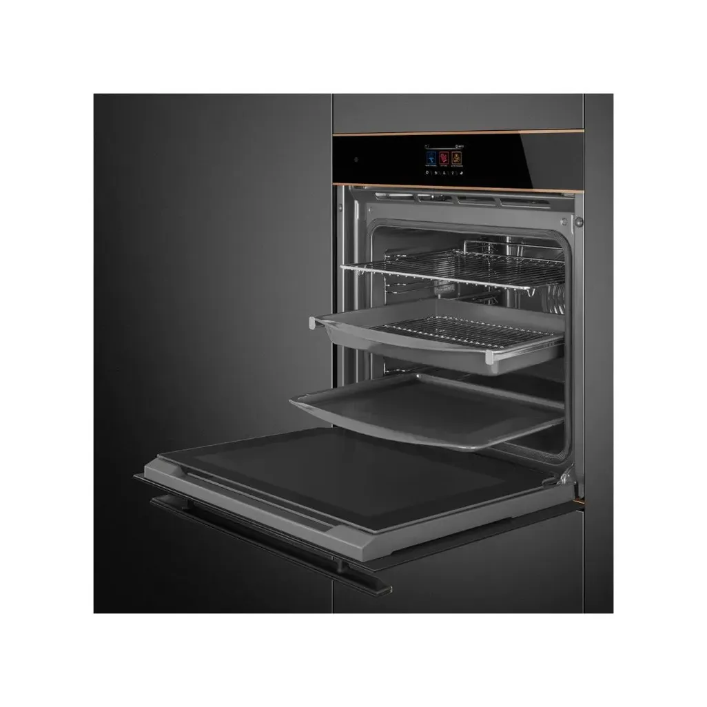 This Smeg 60cm Dolce Stil Novo Pyrolytic Oven is better than your average oven. It offers 10 different cooking programs, 150 automatic programs and 10 customisable options. It offers a maximum temperature of 280°C and has an A+ energy rating. You can cook dishes with different cooking methods and be ready at the same time with the SameTime program. This integrated oven will be perfect for any kitchen and will make your cooking, grilling and baking fun and easy.
