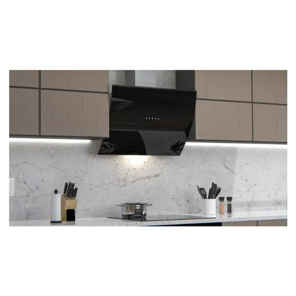 The quality Falco 90cm Curved Motorised Wall Extractor offers all you need in performance and looks. When switched on, the motorised door will open to effectively remove steam, smoke and cooking odours and help to keep your kitchen pleasant. It features aluminum filters, charcoal and has a 2m extendable ducting hose. You can expect a powerful 750m3/hr extraction rate performance with a durable design.