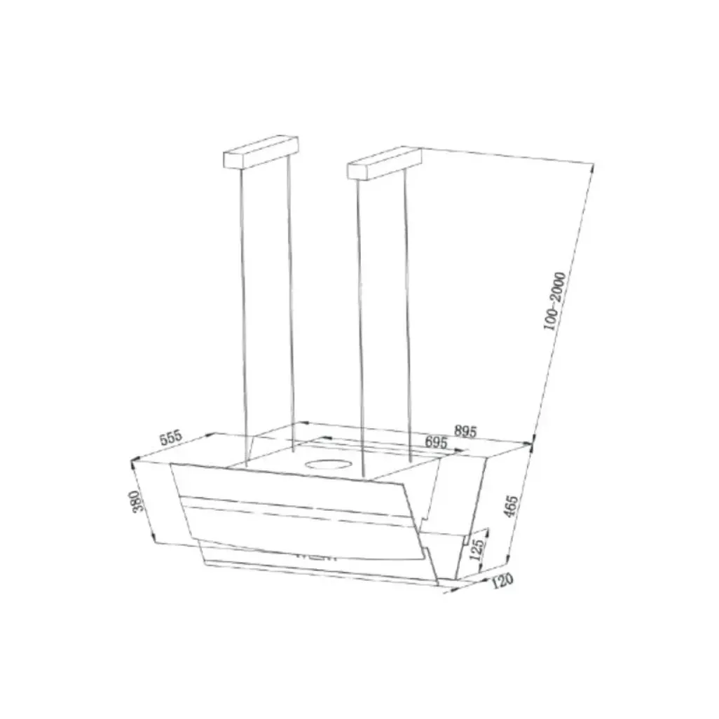 The dimensions of this Falco 90cm V-Shape Island Extractor are H 2465mm x W 900mm x D 555mm and it comes with a 3-year guarantee.