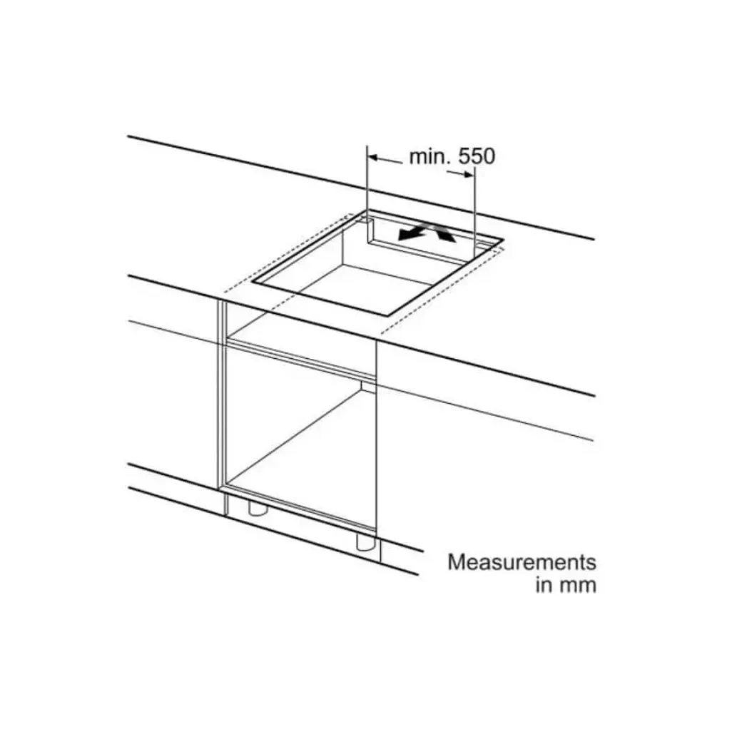 The Siemens 60cm Black Induction Hob dimensions are as follows: H 51mm x W 602mm x D 520mm. The required niche size for installation are H 51mm x W 560-560mm x D 490-500mm. This hob has a warranty of 5 years.