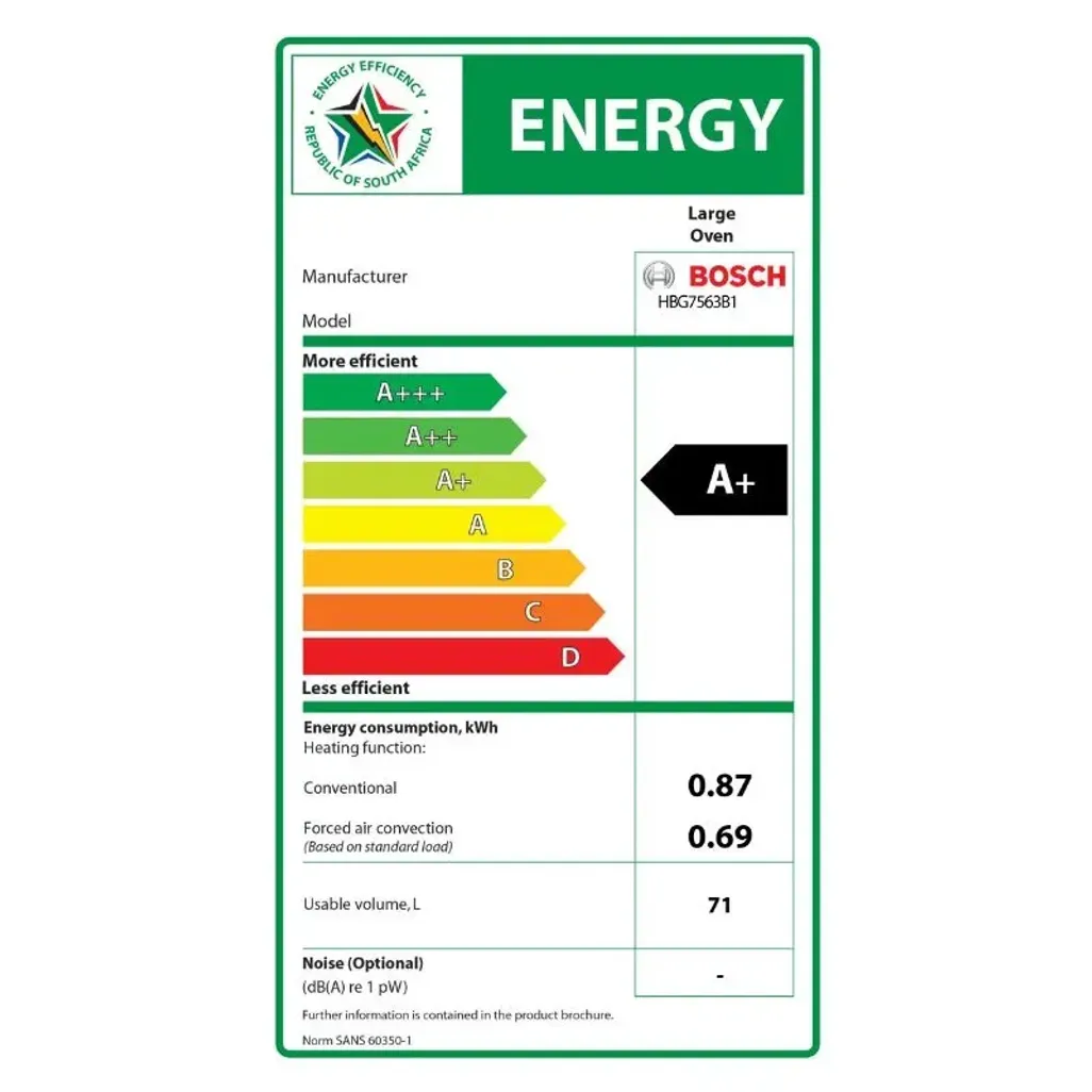 The dimensions of this Bosch 60cm Series 8 Oven are 595mm x 594mm x 548mm, and this Bosch Oven has a 5-year warranty.