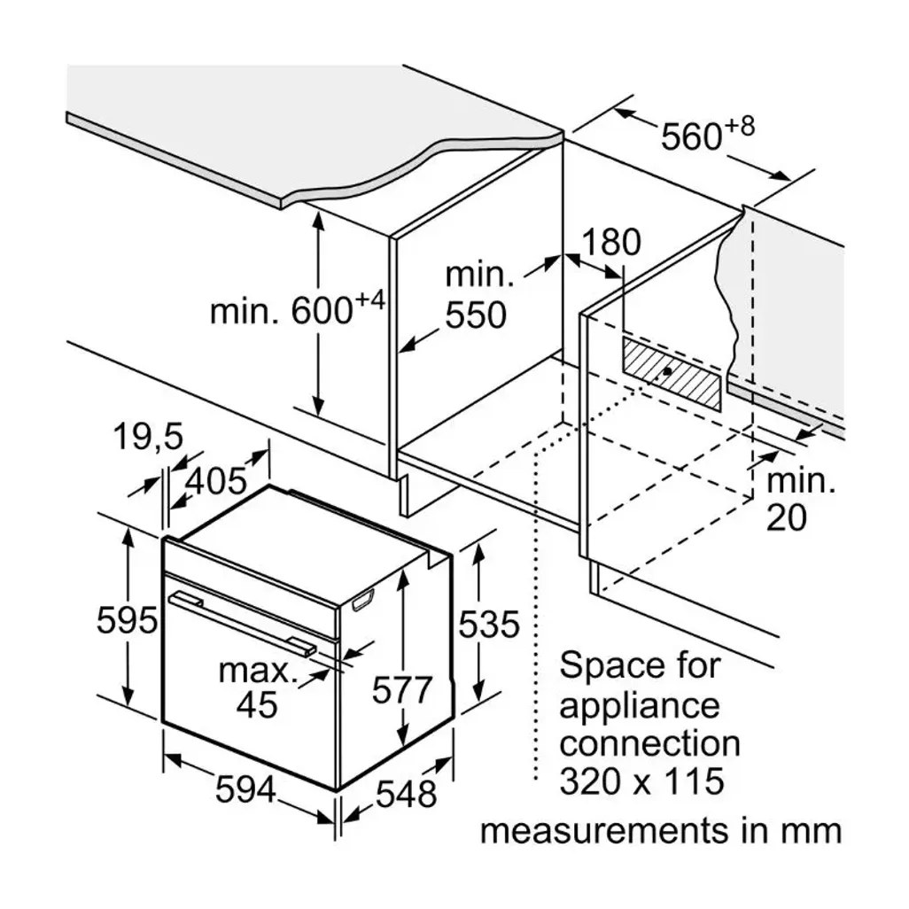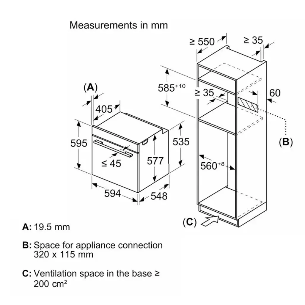The dimensions of the Siemens IQ700 Home Connect Oven are 595mm x 594mm x 548mm, and this Siemens Built-In Oven has a 5-year guarantee.