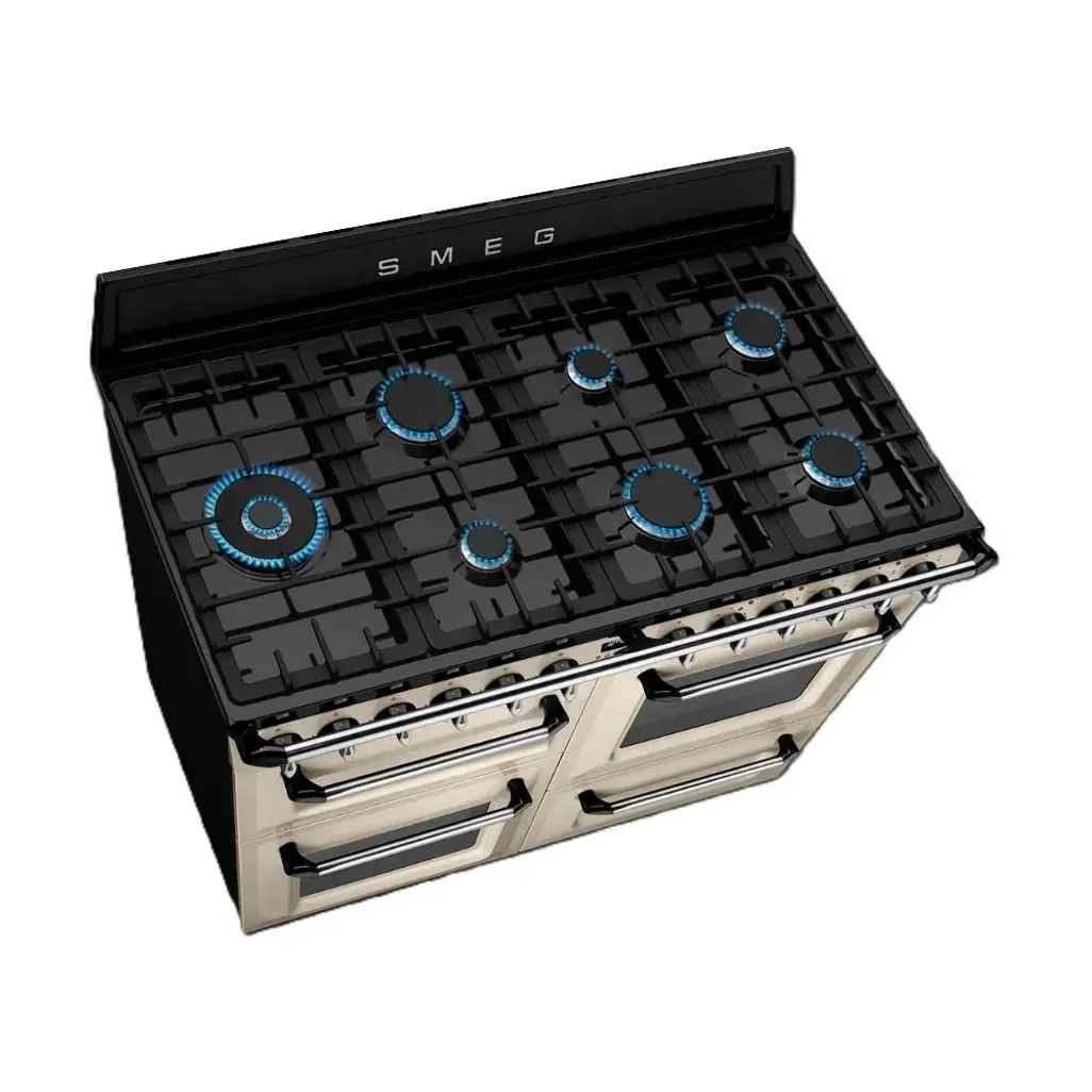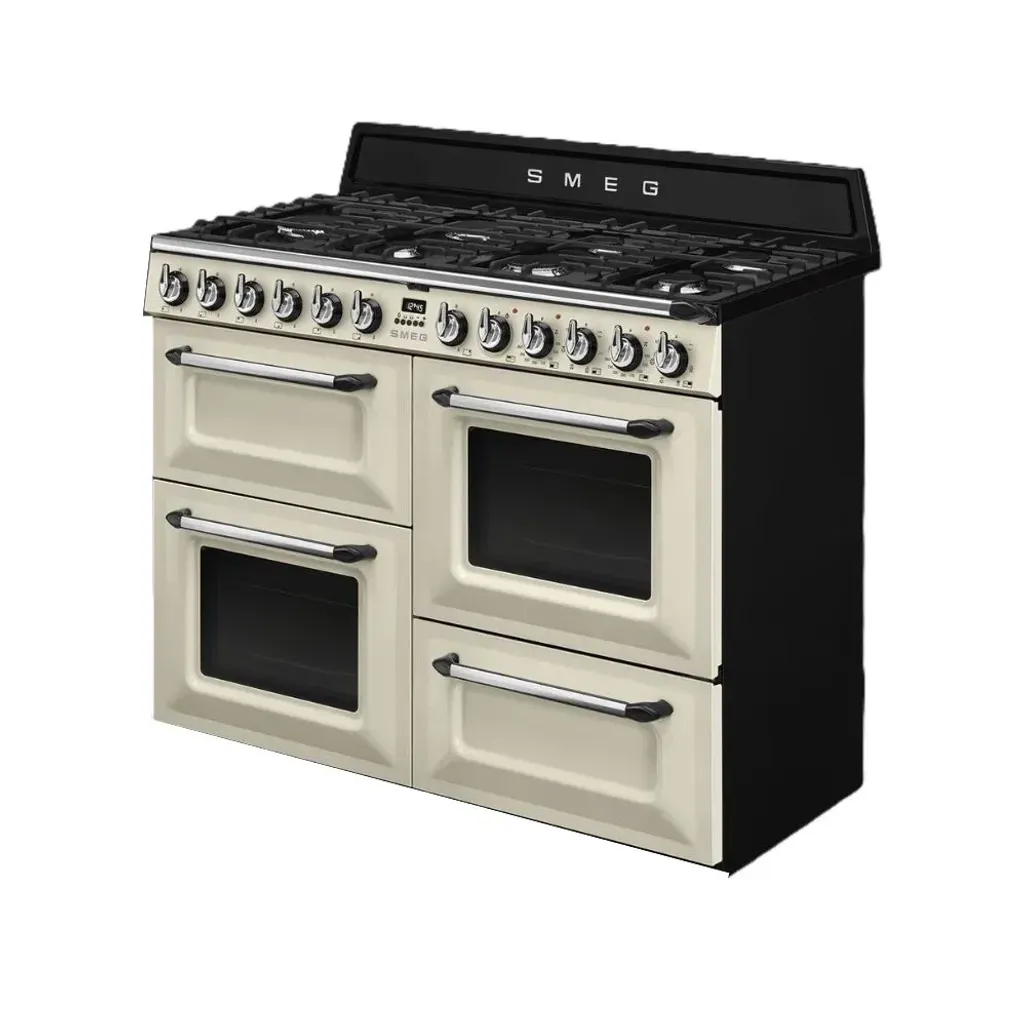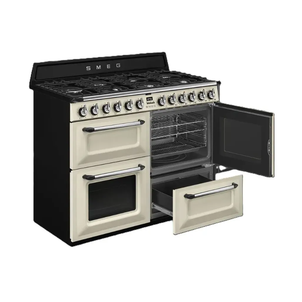 Bring timeless elegance and professional-grade cooking performance into your kitchen with the Smeg 110cm Cream Gas /Electric Victoria Cooker. This beautifully designed dual fuel cooker combines classic style with cutting-edge technology, making it the perfect centrepiece for any home chef who values both aesthetics and functionality. It comes equipped with seven powerful gas burners that provide precise heat control, allowing you to master all your recipes, from delicate simmering to high-heat searing.